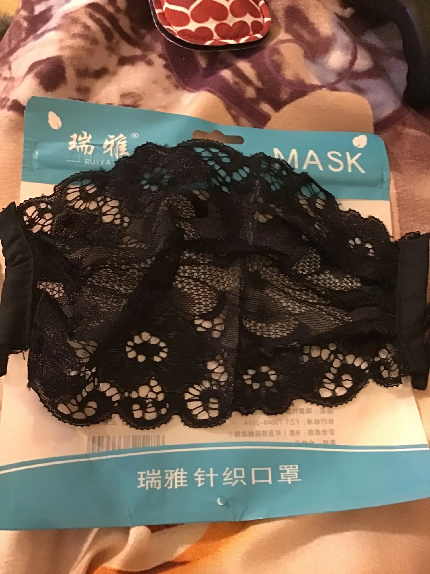 Маска для лица Женская Однослойная черная с вышивкой кружева Регули...