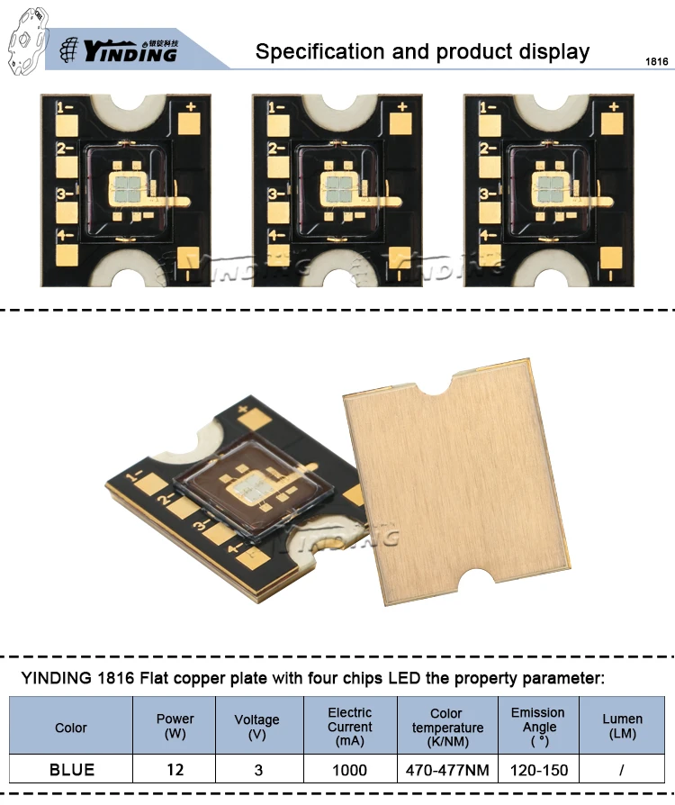 YINDING 1816 плоская медная пластина с четырьмя ЧИПАМИ светодиодный параметр свойства: