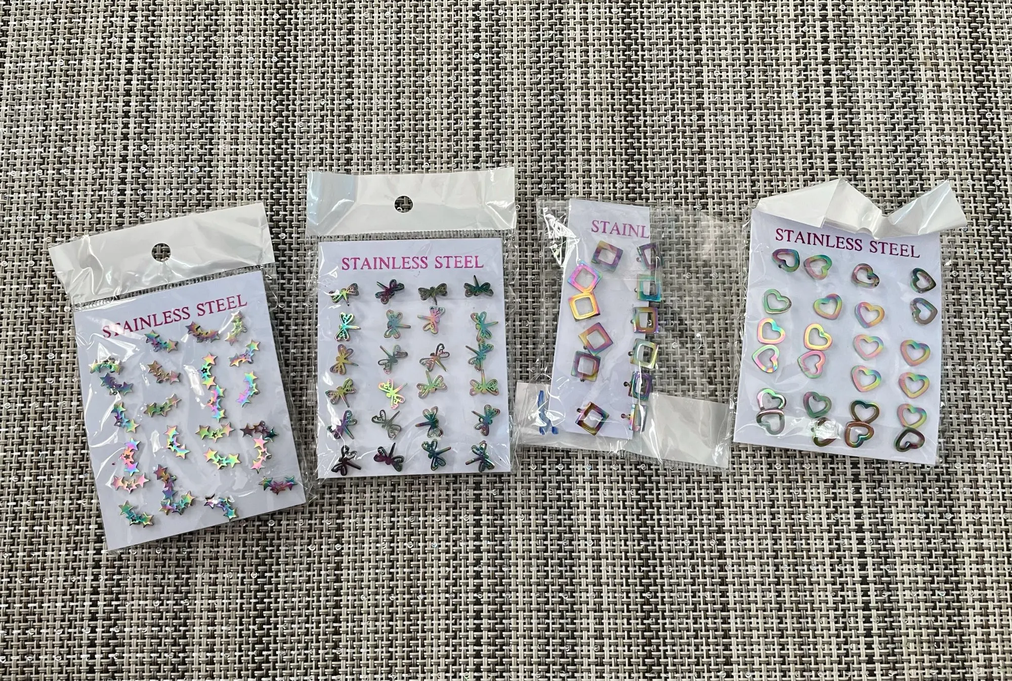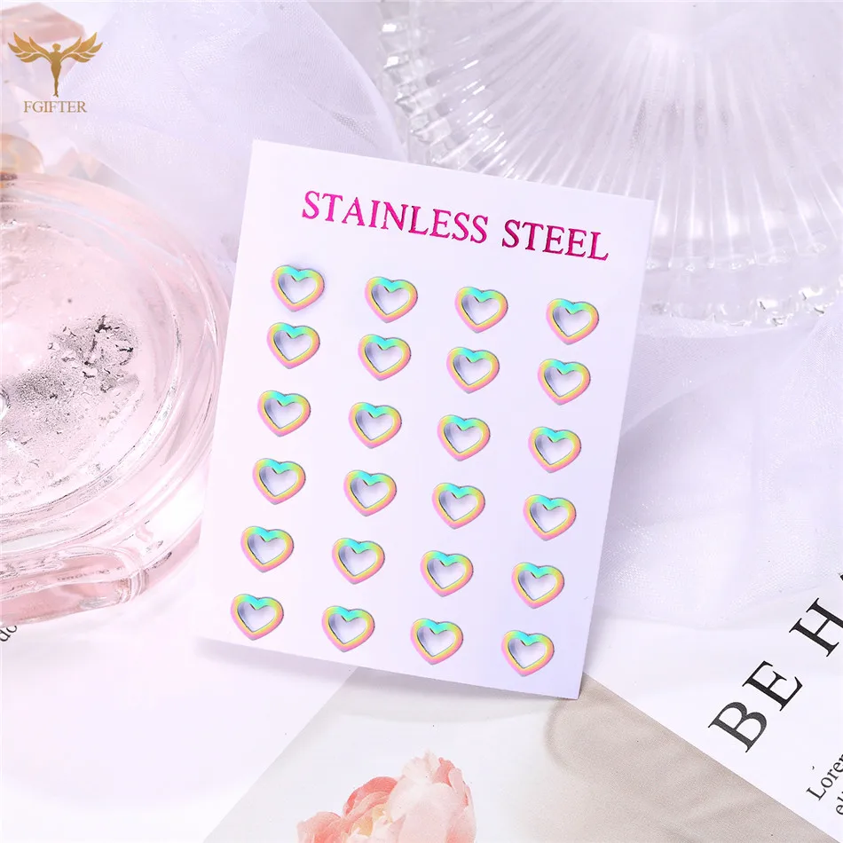 Материал: нержавеющая стальВысокое качество на 100% абсолютно новыйЦвет: цветные СерьгиПреимущество: не вызывает аллергии, не выцветаетКомплект: 12 пар/лот