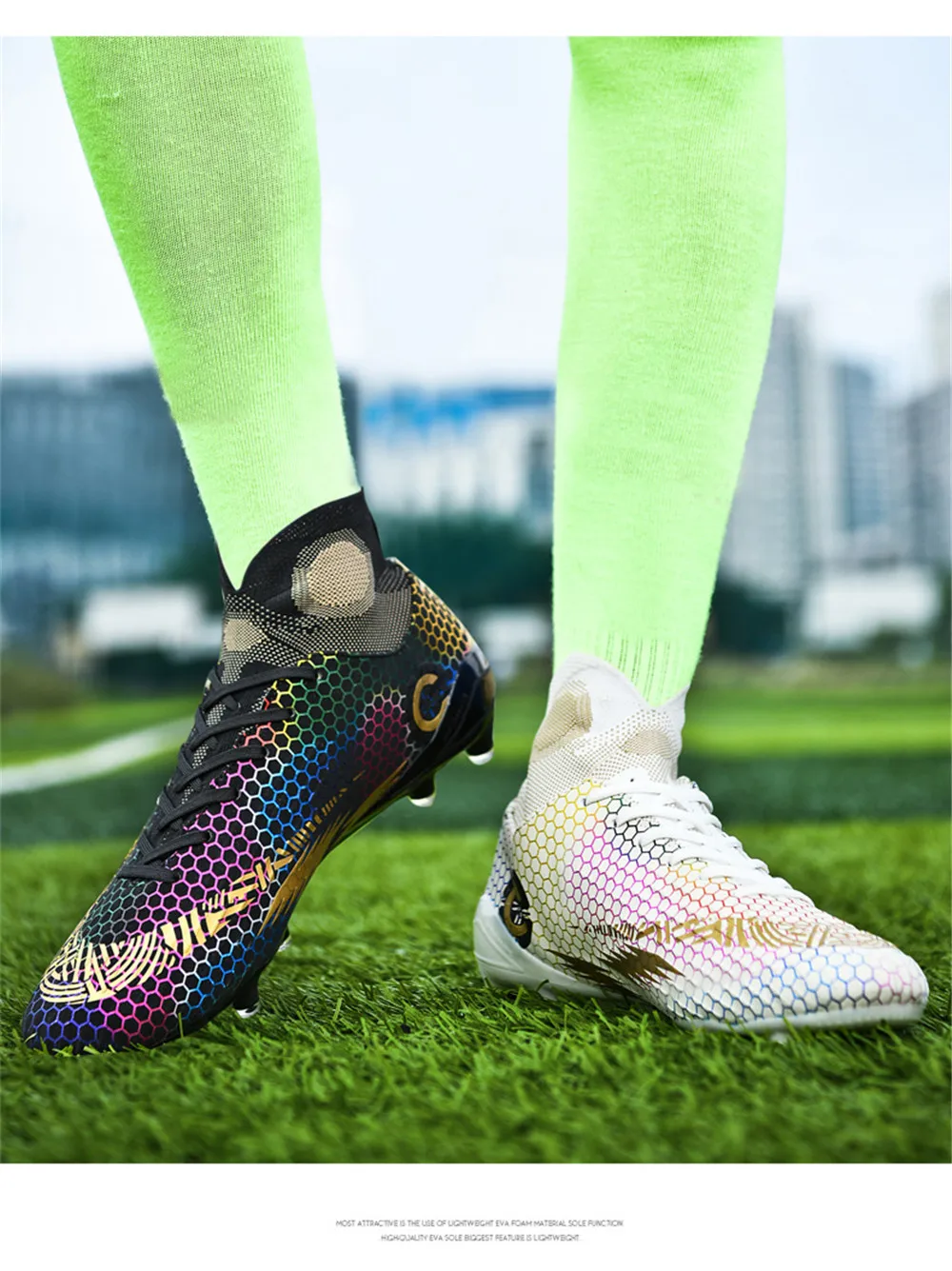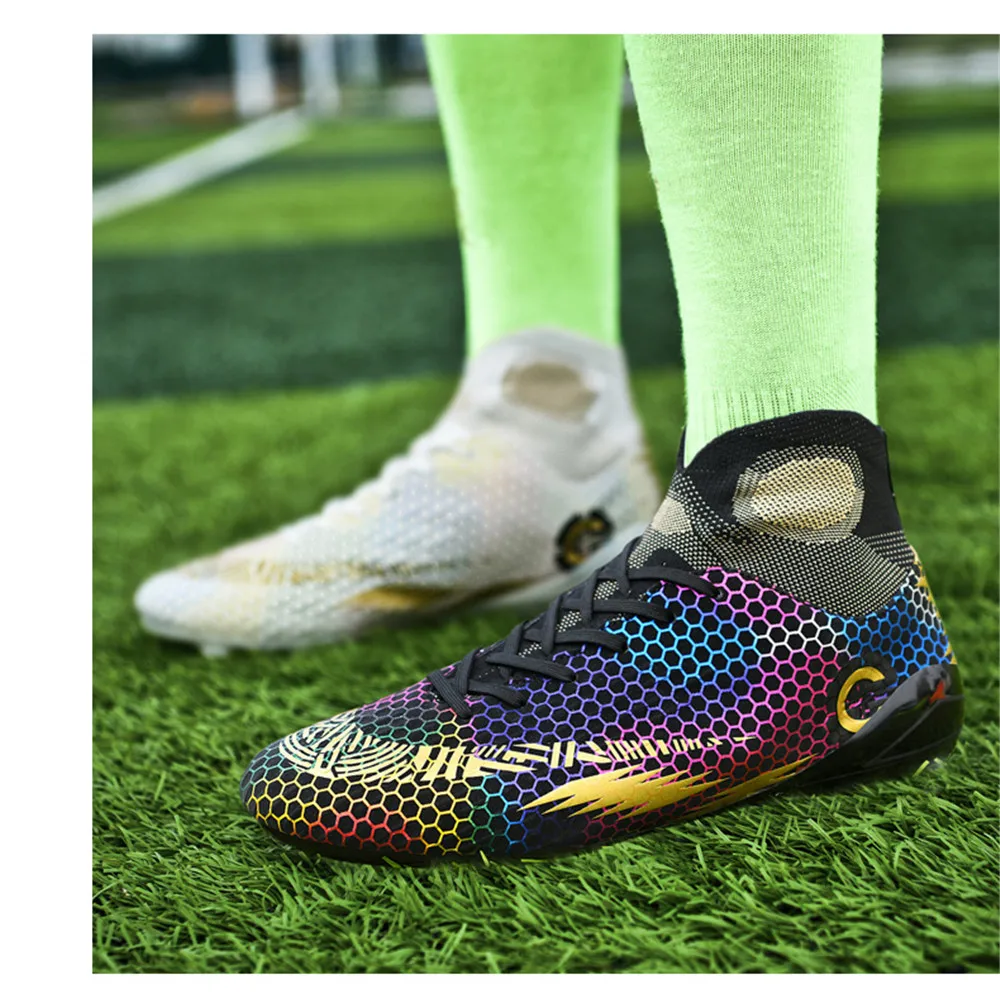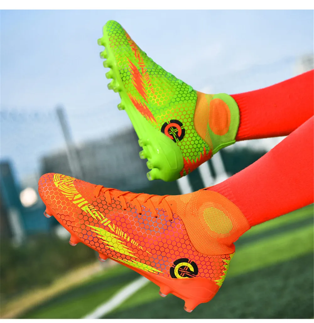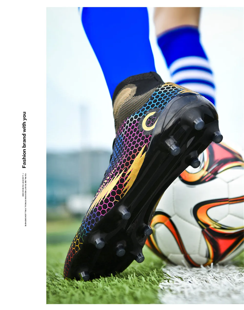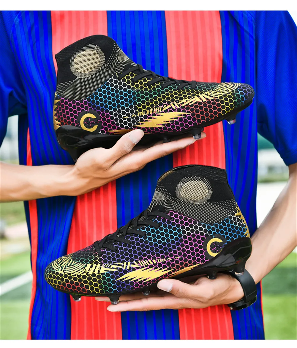 Новые уличные мужские футбольные шипованные высокие ботильоны футбольная обувь с длинными шипами тренировочные ботинки для мужчин и женщин Мужская футбольная обувь Трава TFAGFG 35-46