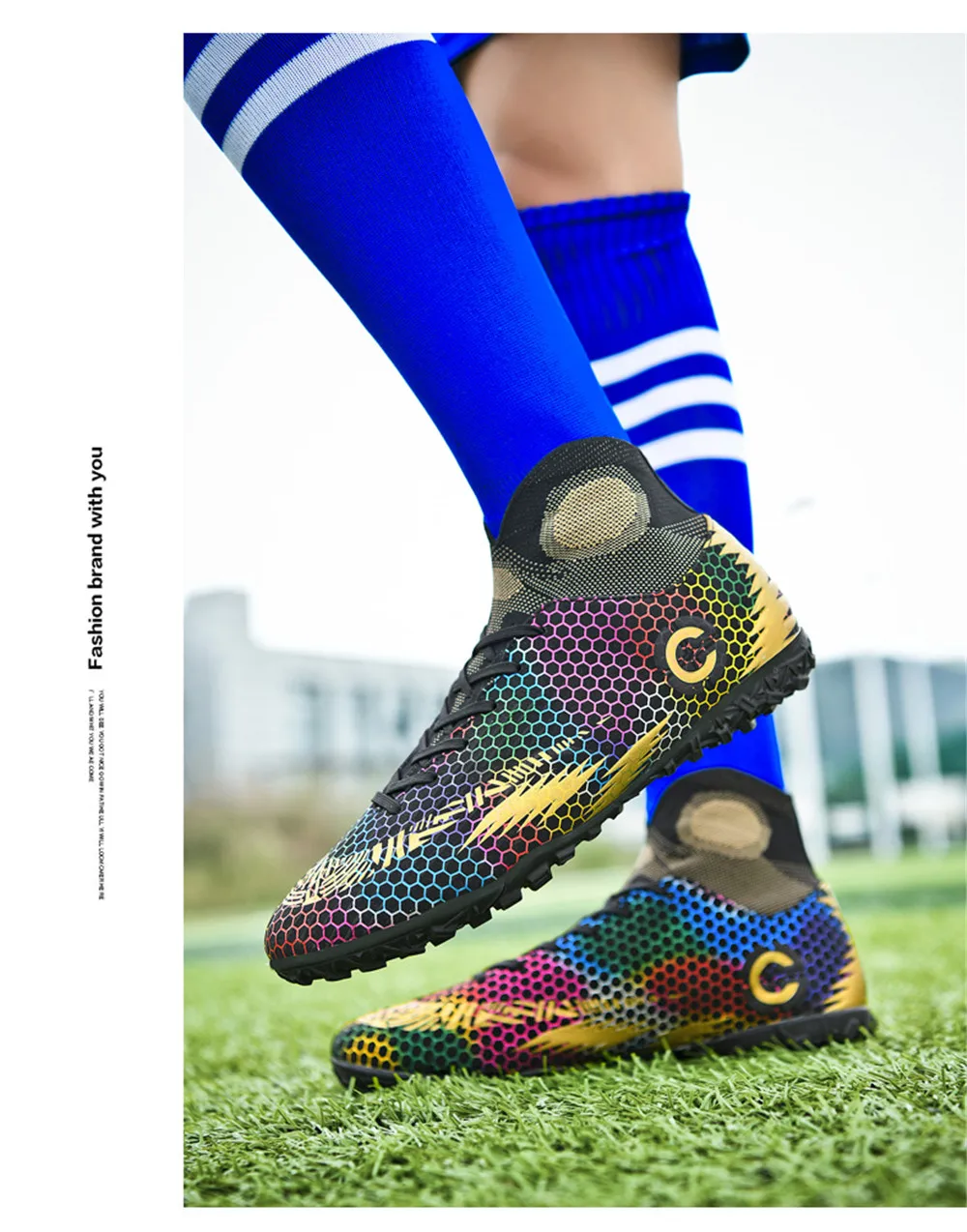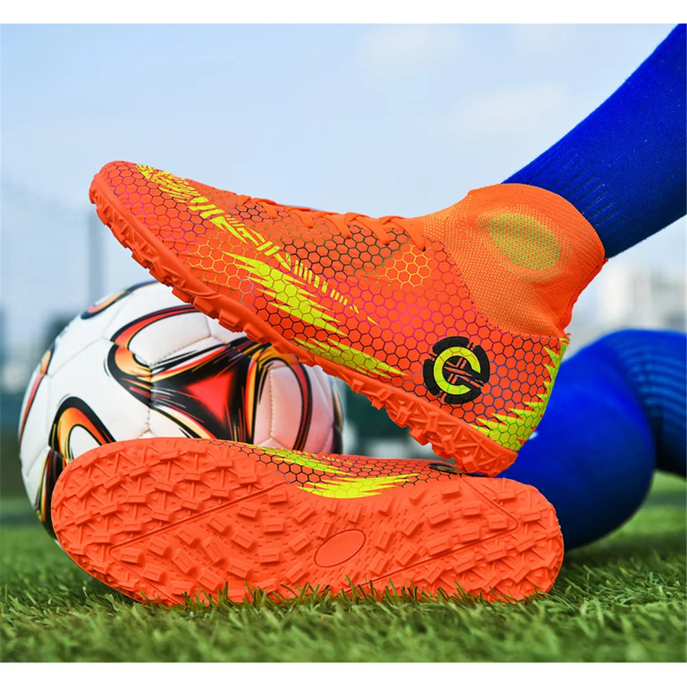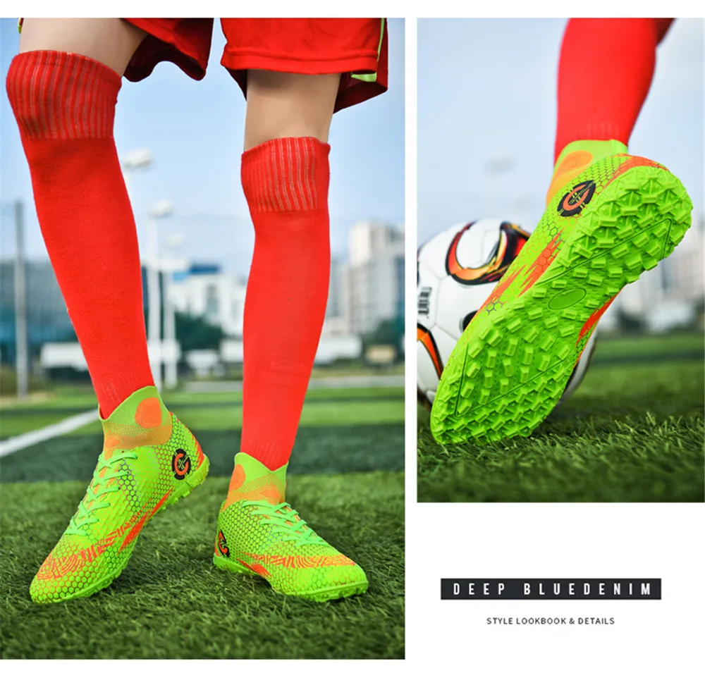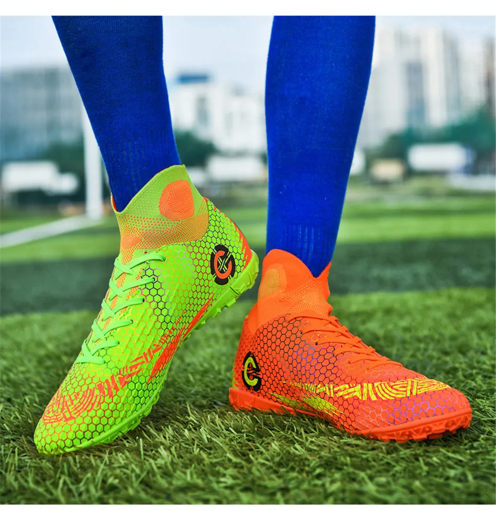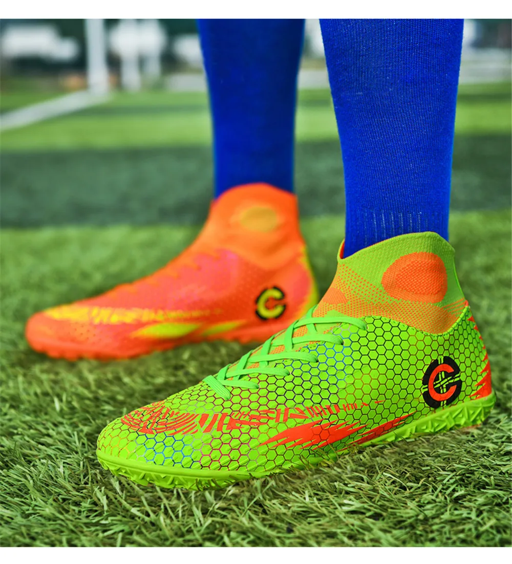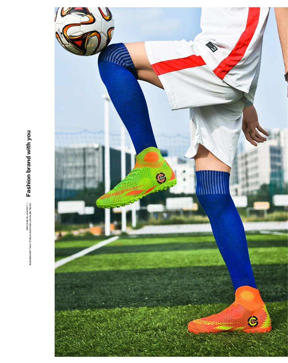Новые уличные мужские футбольные шипованные высокие ботильоны футбольная обувь с длинными шипами тренировочные ботинки для мужчин и женщин Мужская футбольная обувь Трава TFAGFG 35-46