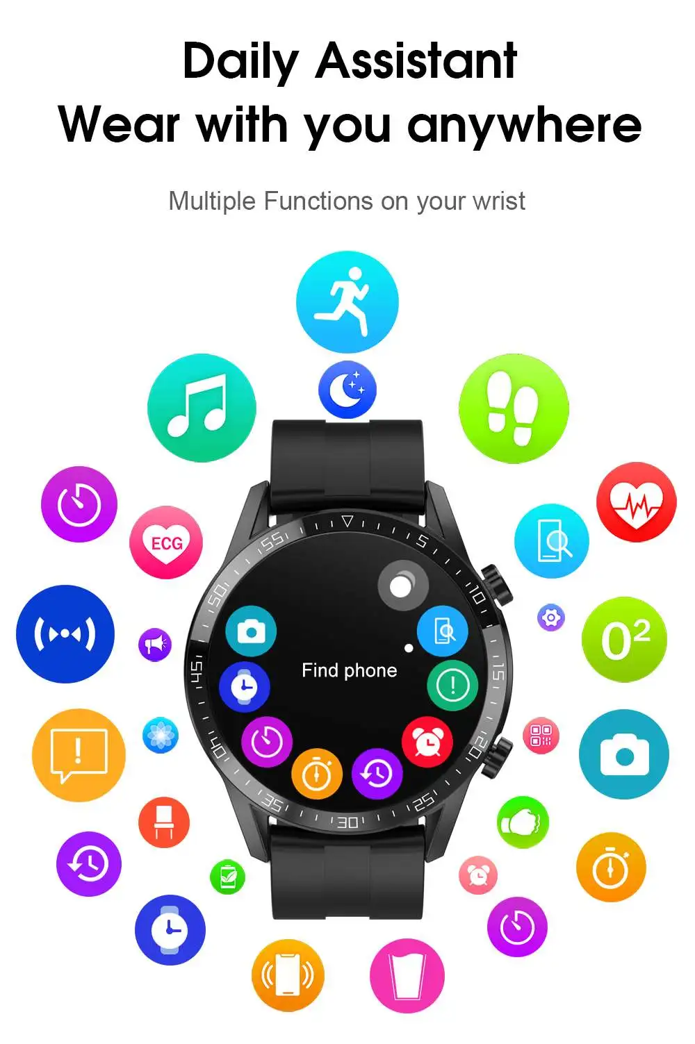 Измерение температуры тела 24 ч, частота сердечных сокращений, ЭКГ, кровяное давление, уровень кислорода в крови, загрузка циферблата часов, шаги, секундомер, управление музыкой, совместимая с Bluetooth Камера