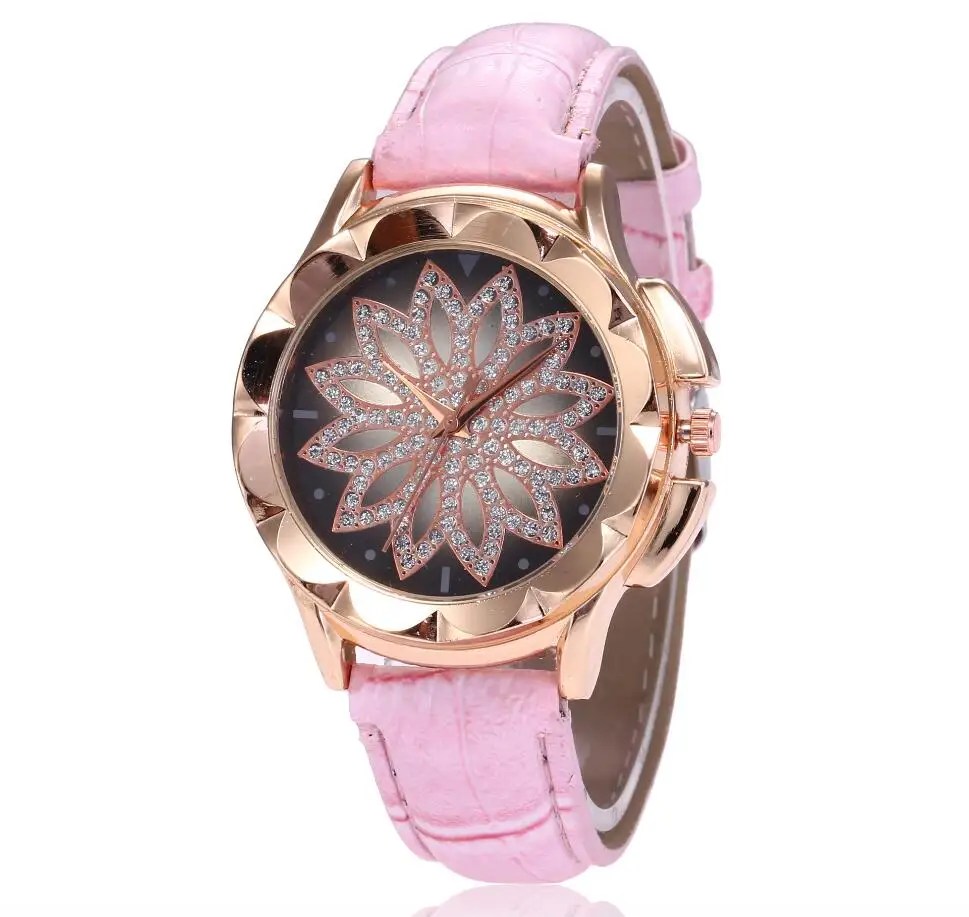 Часы женские, стразы, с большим циферблатом и кожаным ремешком