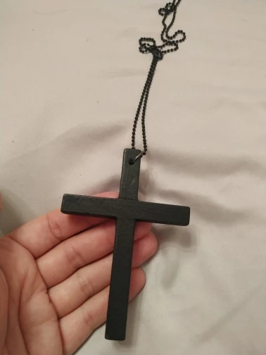 Доволен, потому что размер очень хороший, для 176 см и 93 кг (спортивный корпульс) платье почти не трогает землю, но достаточно, чтобы спрятать ноги. Уровень плеч-это то, что нужно, я думал, что он был бы слишком широким. Слишком плохо, крест черный, белый цвет выделил бы его
