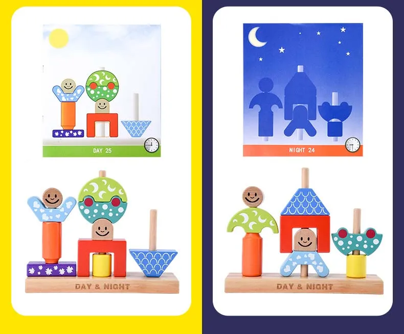 Новые деревянные блоки форма укладки обучающая детская игрушка Солнце Луна День Ночь столб блок игрушка Сделай Сам Нетоксичная охрана окружающей среды