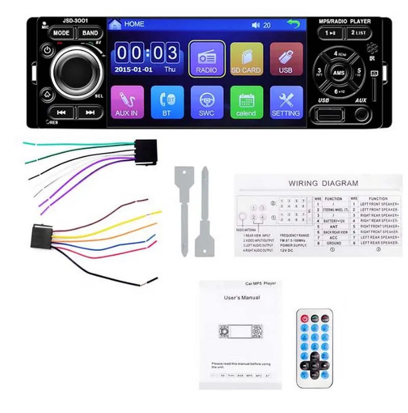Автомобильный MP5-плеер Авто Аудио Авторадио автомобильное радио камера заднего вида Авто ленты микрофон Bluetooth стерео 4 дюйма 1 Din сенсорный экран
