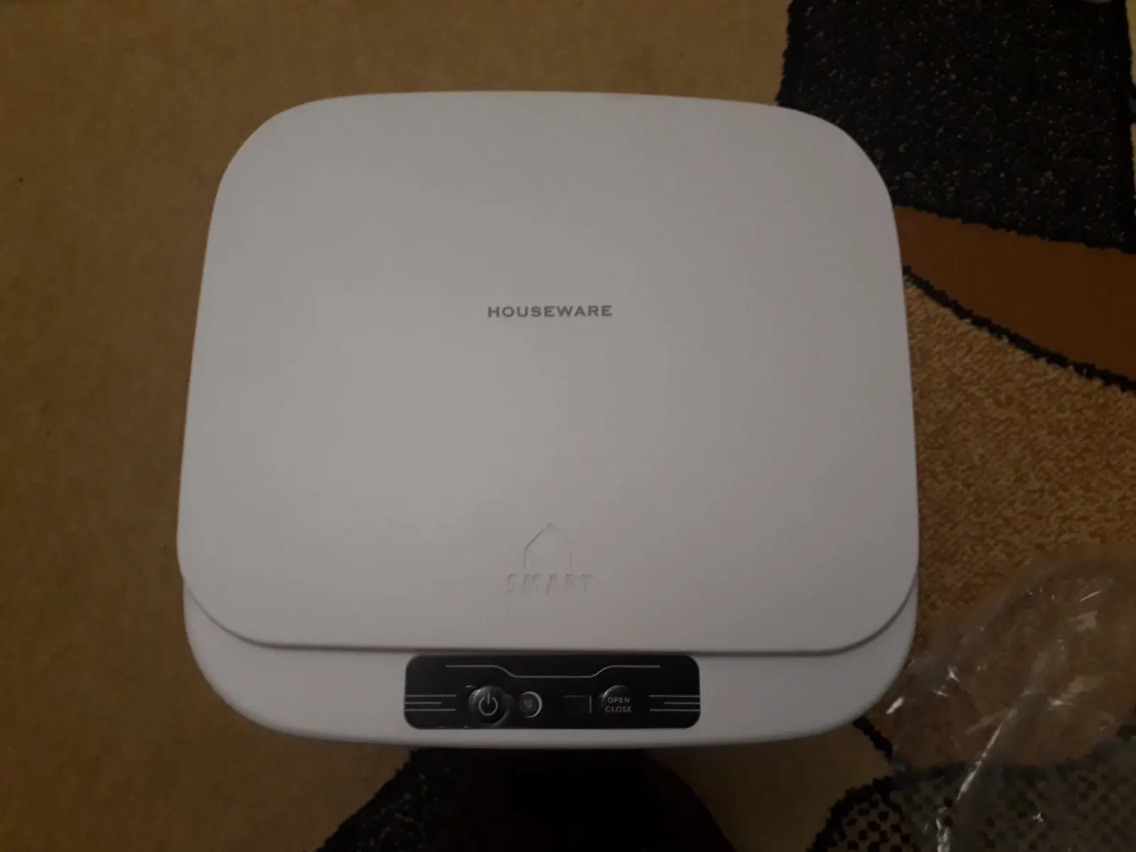 Товар шёл очень долго. Мне уже выставили значение - "товар получен", это не смотря на продление защиты покупателя. Думал, что вообще уже не получу. Упакован хорошо в толстую пупырку и сверху пенопласт. Батареек в комплекте нет. Необходимо докупить 4 шт. типа АА. Непонял для чего в комплекте пласмассовое кольцо и чёрная коробочка. Кольцо запихал внутрь, чтобы мусорный пакет не слипался, для чёрной штуки применения не нашёл. Открывается быстро, достаточно провести сверху рукой или стукнуть по корпусу. Закрывается само примерно через 7 сек. Выглядит не так массивно и красиво, как на фотографиях, более хлипкий что-ли. Но в целом нормально.