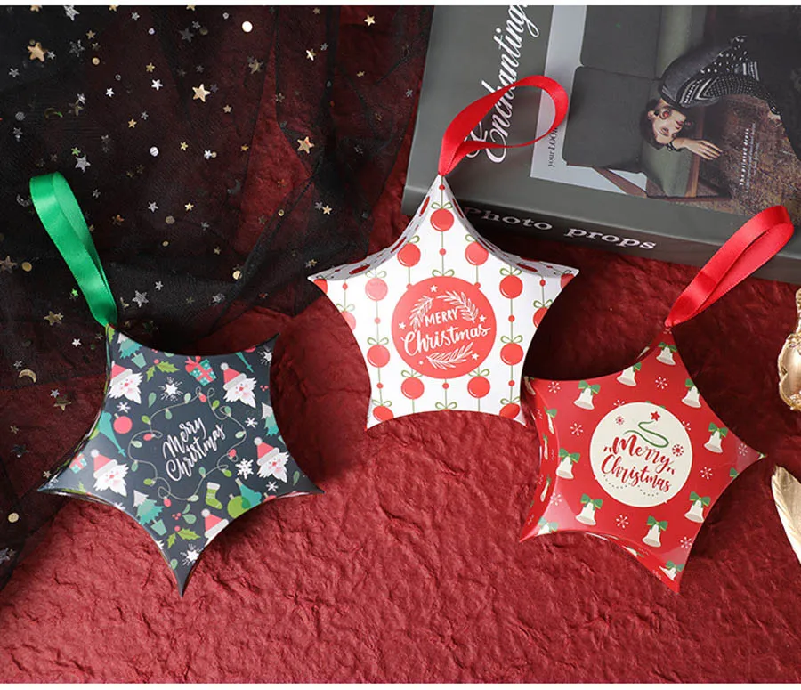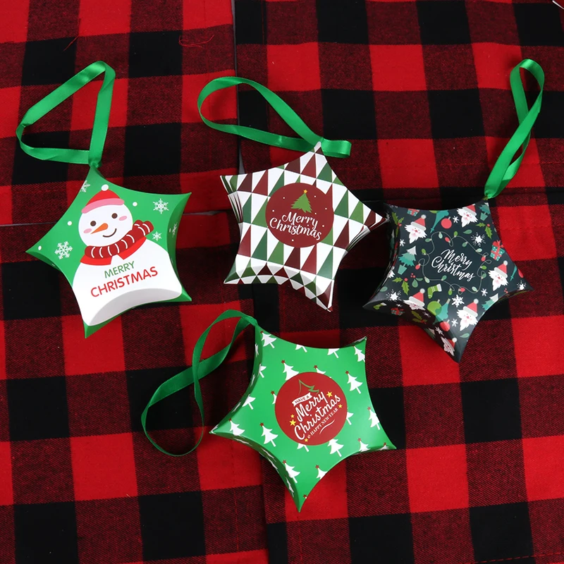 40 шт./лот, рождественские подарочные коробки, коробка конфет в форме звезды, рождественские коробки, сумки для дома, Новогодние рождественские украшения, подарки для детей