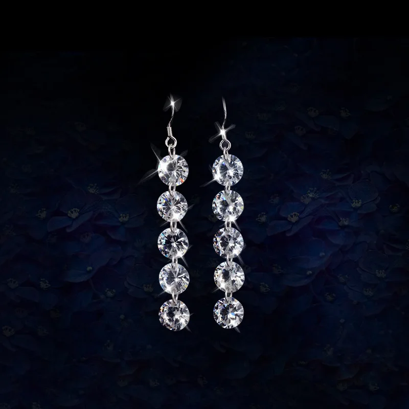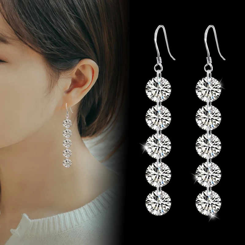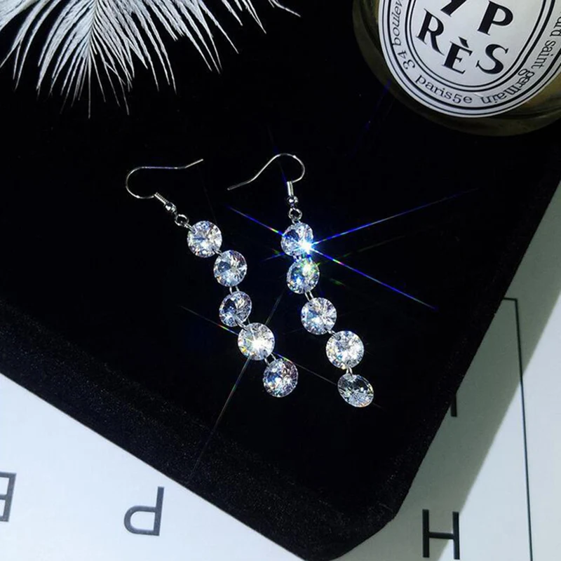 Женские модные длинные висячие серьги с блестящими кристаллами с фианитами, очаровательные Висячие серьги, ювелирные изделия для женщин и девушек