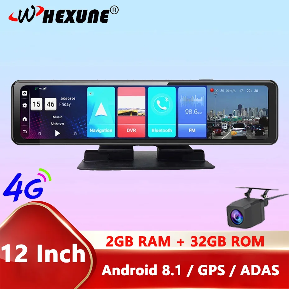 Автомобильный видеорегистратор WHEXUNE, 4G, 12 дюймов, 4-канальный ...