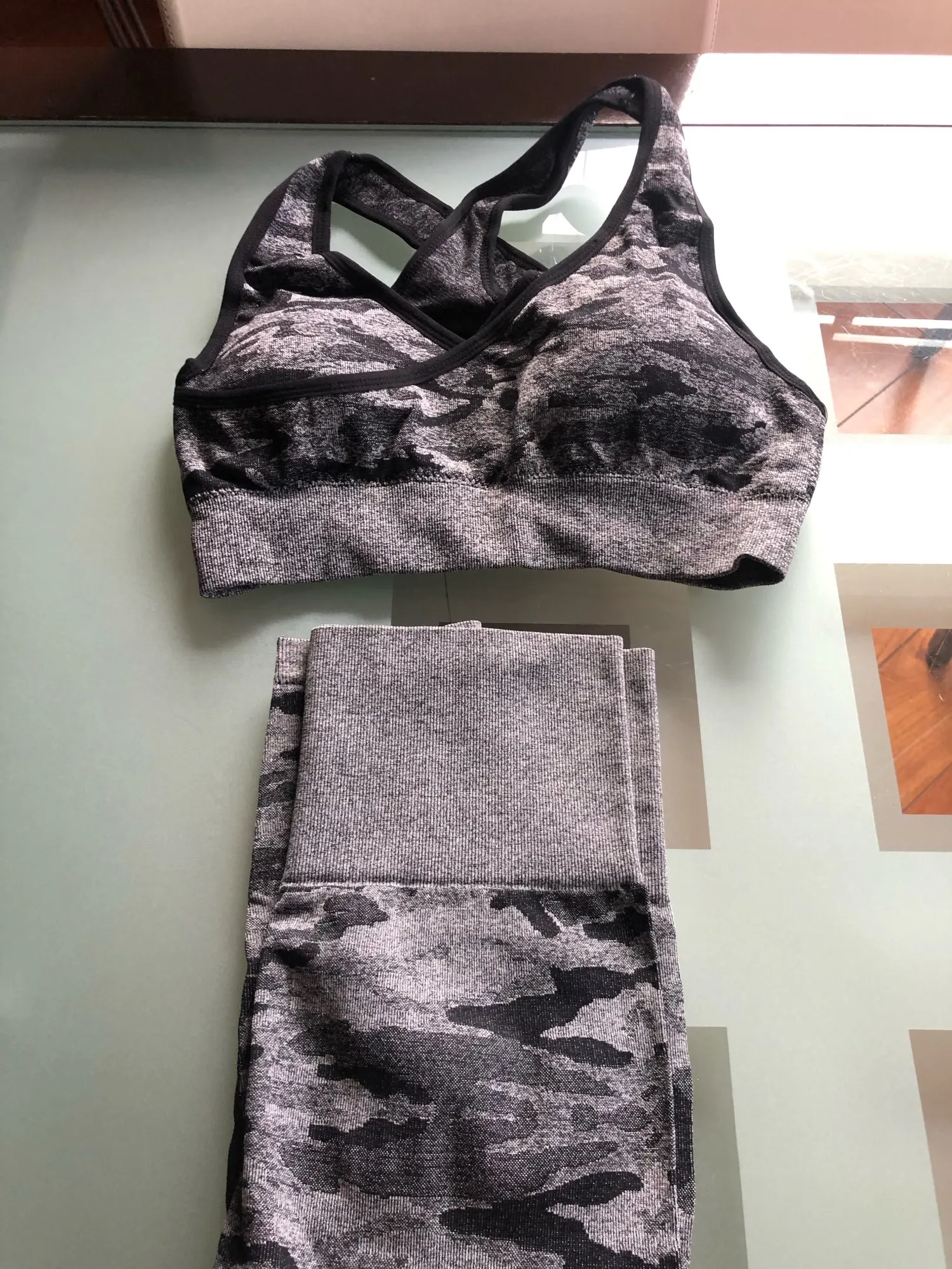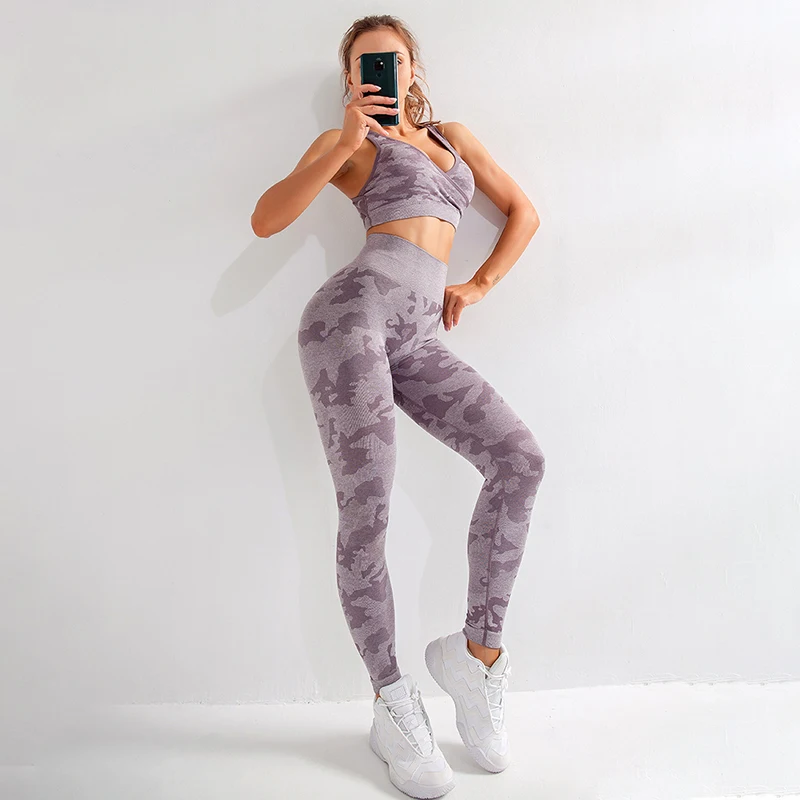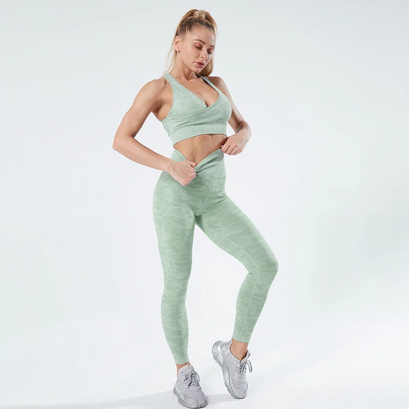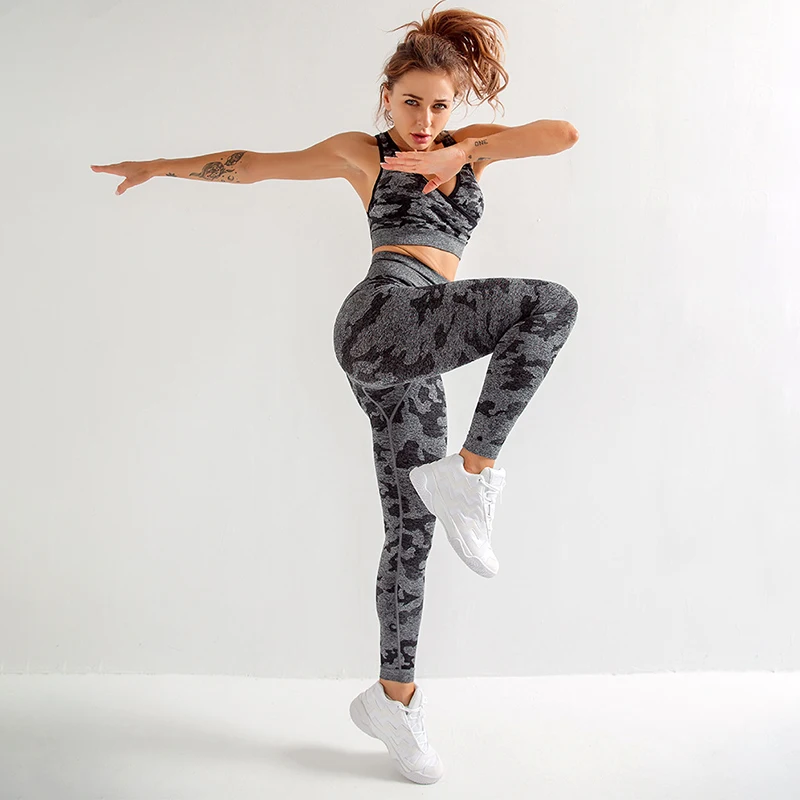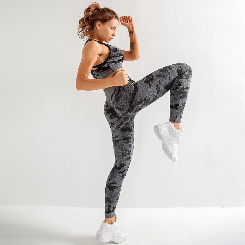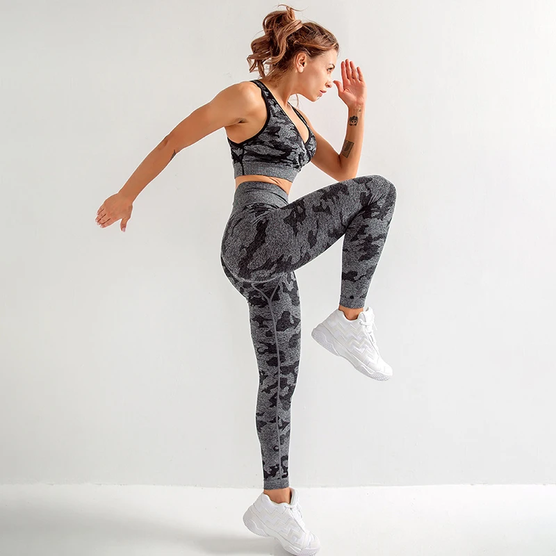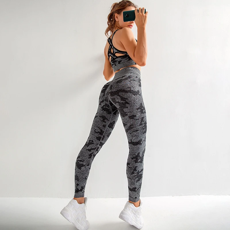 SALSPOR, камуфляжные женские комплекты для йоги, бесшовный дышащий бюстгальтер, пуш-ап, леггинсы, для фитнеса, комплект из 2 предметов, спортивные комплекты для занятий спортом