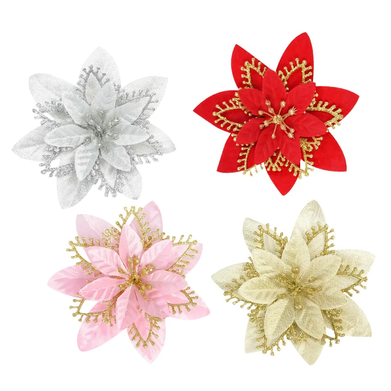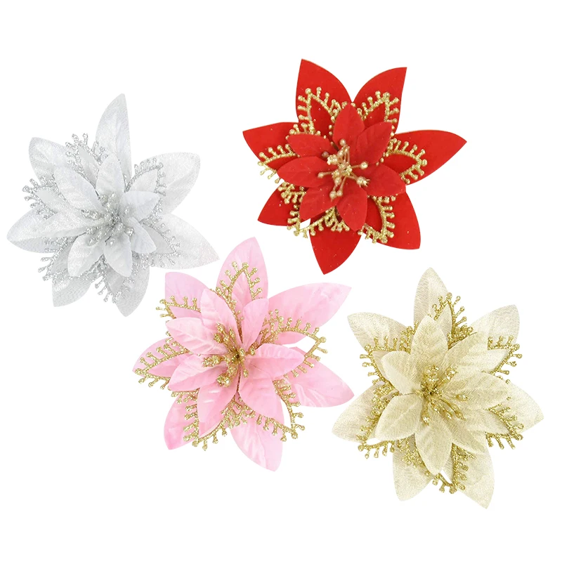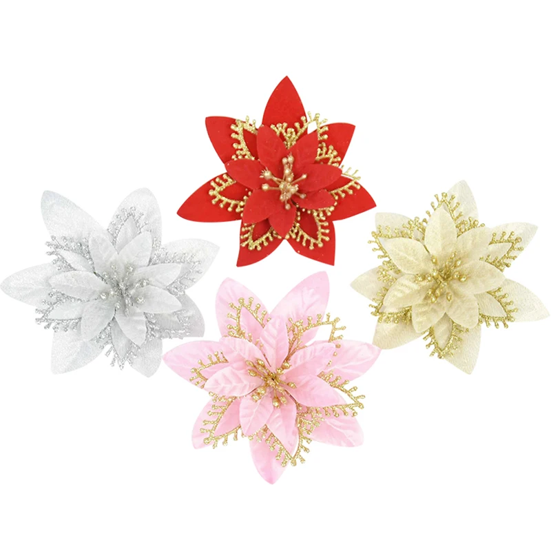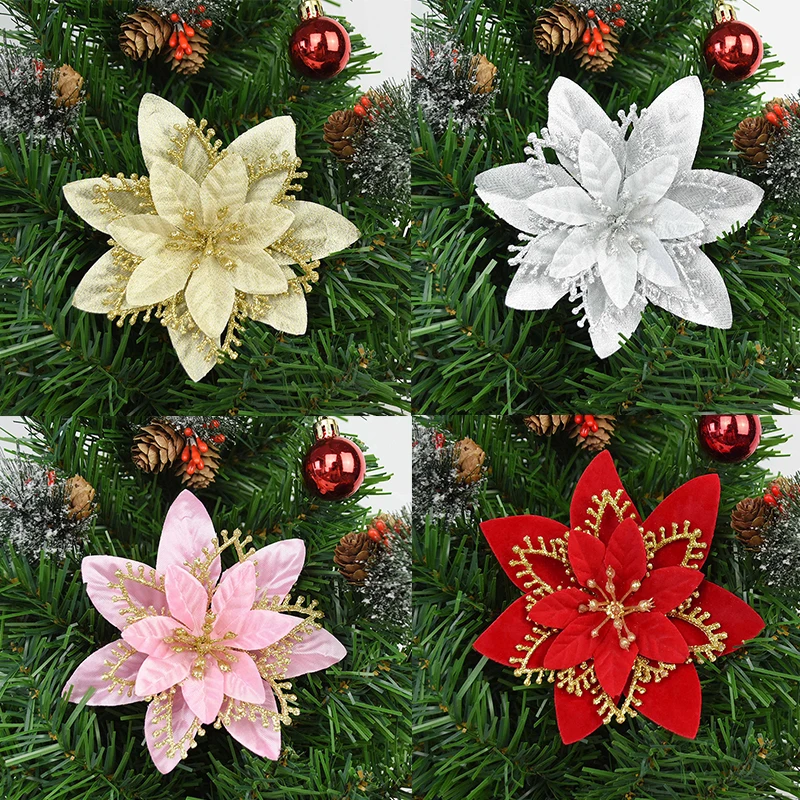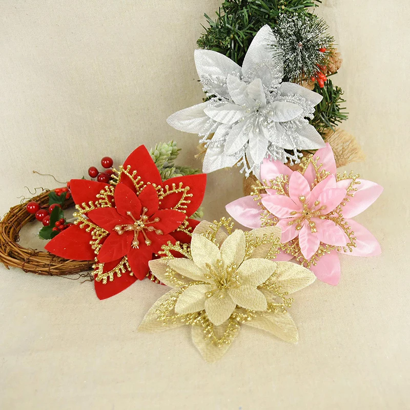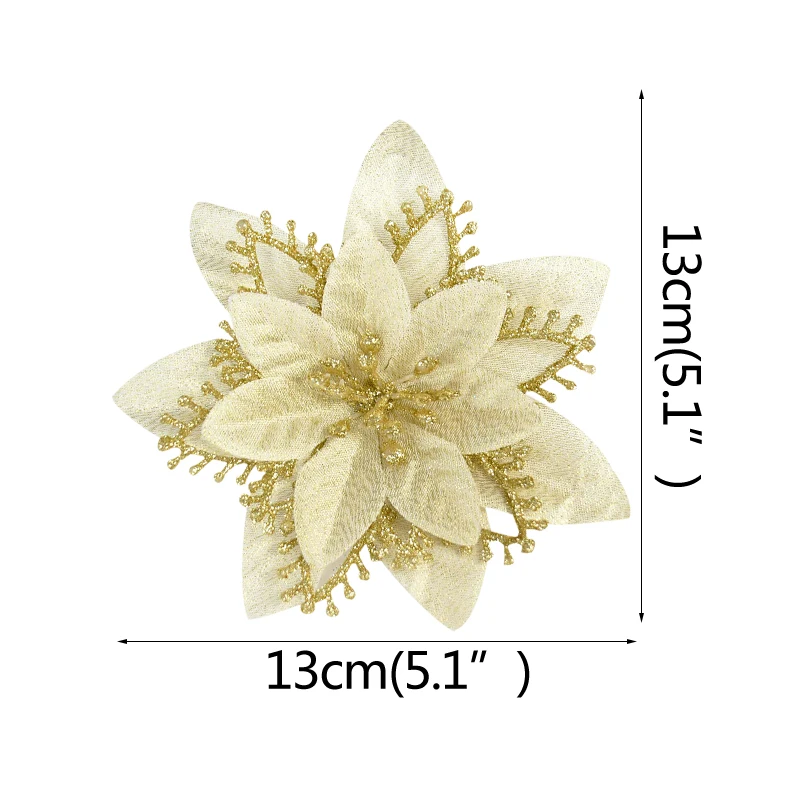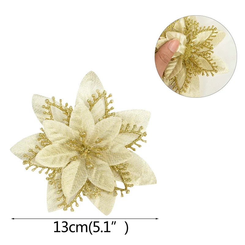 5 шт. 13 см, золотые и серебряные Искусственные Рождественские цветы, Подвесные Украшения для рождественской елки, украшения для дома, новогодний декор