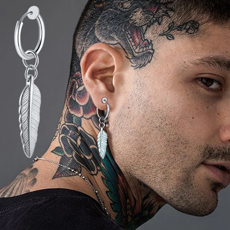 Серьги в виде листьев и перьев для мужчин, Ювелирное Украшение для пирсинга без пирсинга