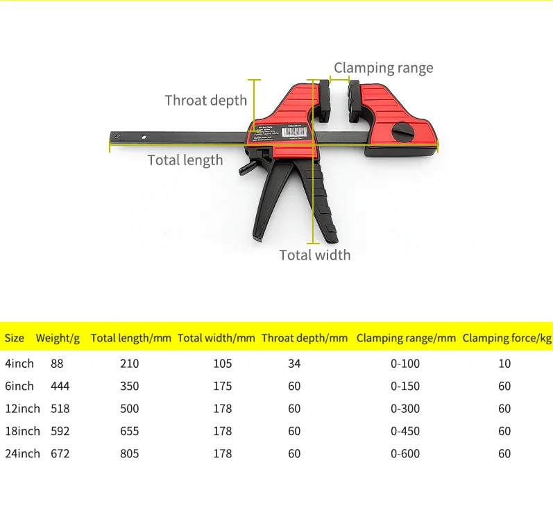 Пластиковые сверхмощные f быстроразъемные зажимы для деревообработки высотомер diy инструмент Столярный зажим для тисков Столярный станок 4 "6" 12 "18" 24"