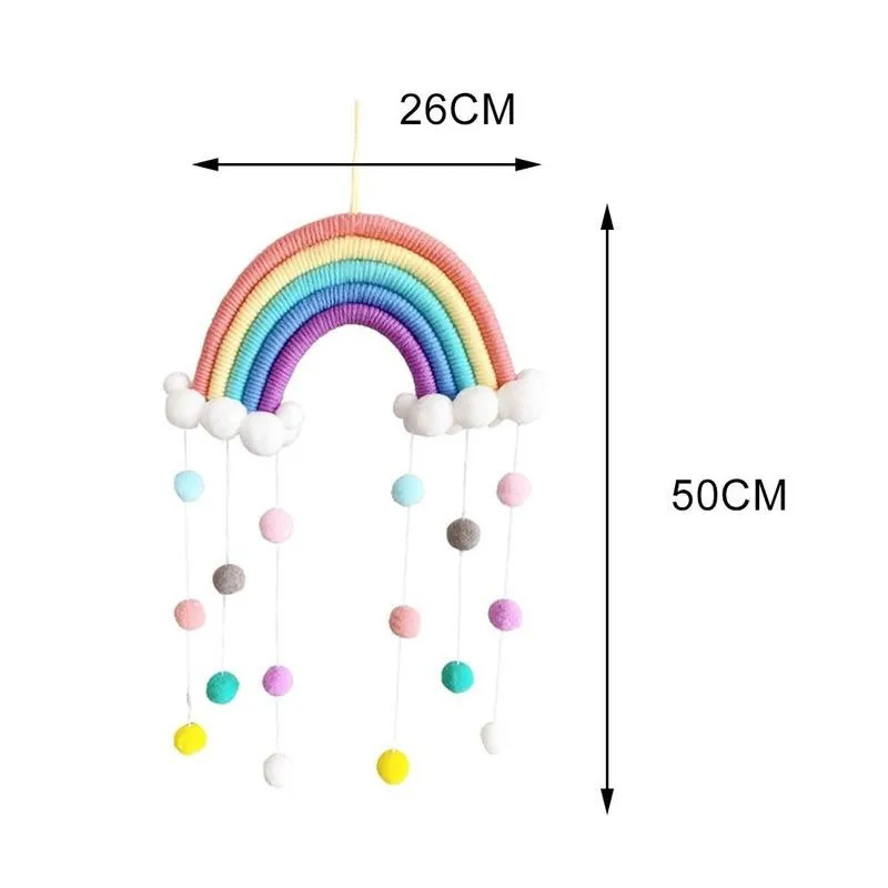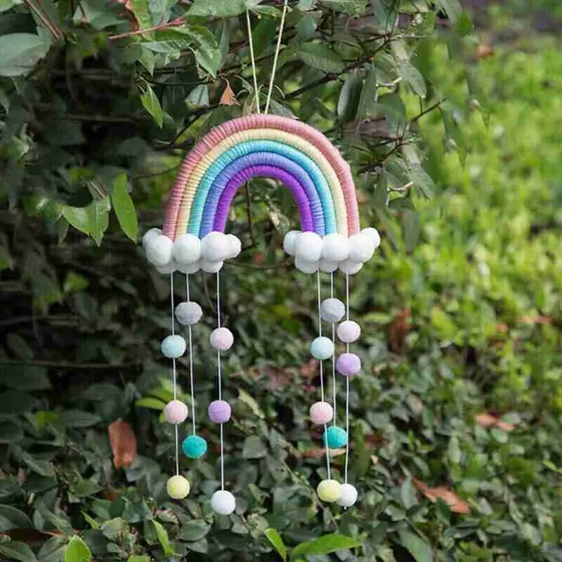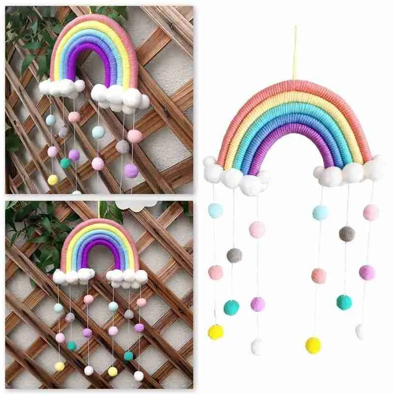 Ins скандинавские ручные облака Радужная подвеска с цветными помпонами Подвески Бохо настенный гобелен кисточкой ветер куранты Декор
