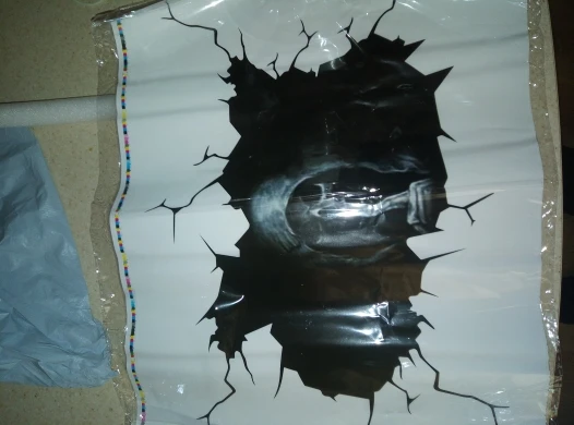 качество стремное. разрешение низкое. квадратики. отправили не в рулоне, а свернув. посередине наклейки образовался залом