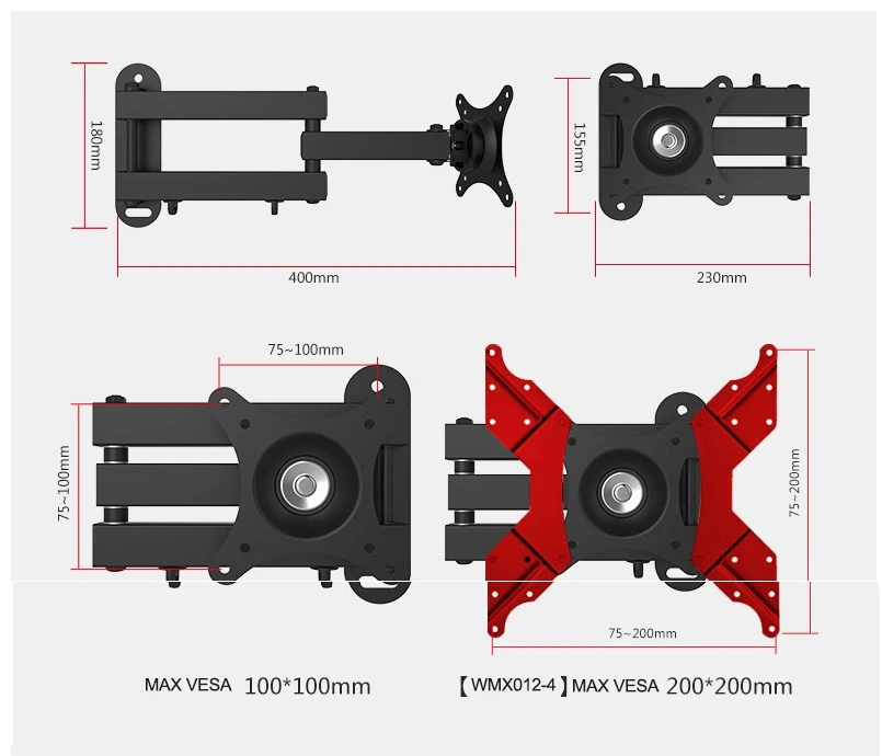 Настенный кронштейн для телевизора LVDIBAO, Универсальный вращающийся держатель, крепления для телевизора от 14 до 32 дюймов, для ЖК светодиодный монитора, плоской панели