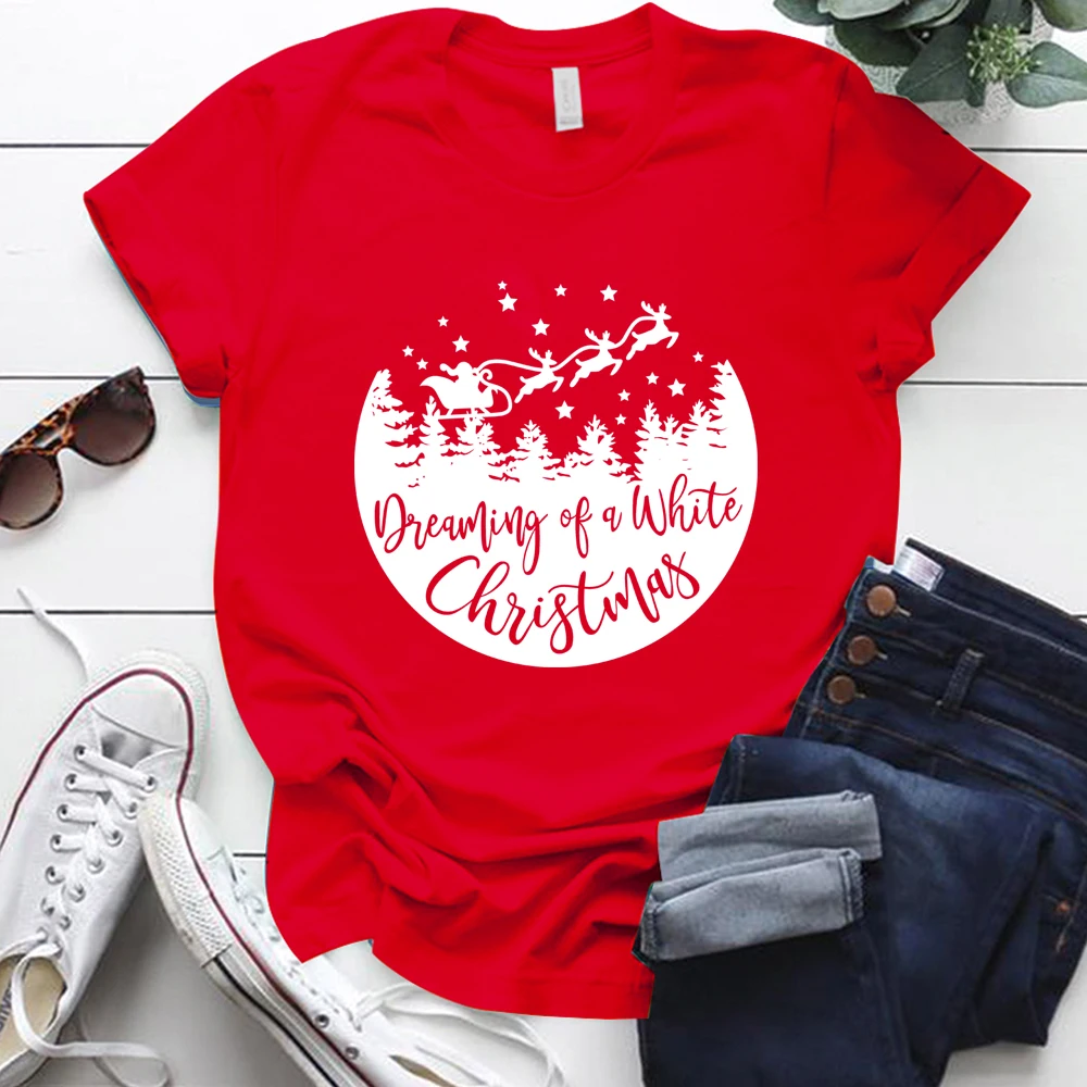 Женская футболка с рисунком мечты о белом рождественском стиле, праздничные женские футболки оверсайз с круглым вырезом
