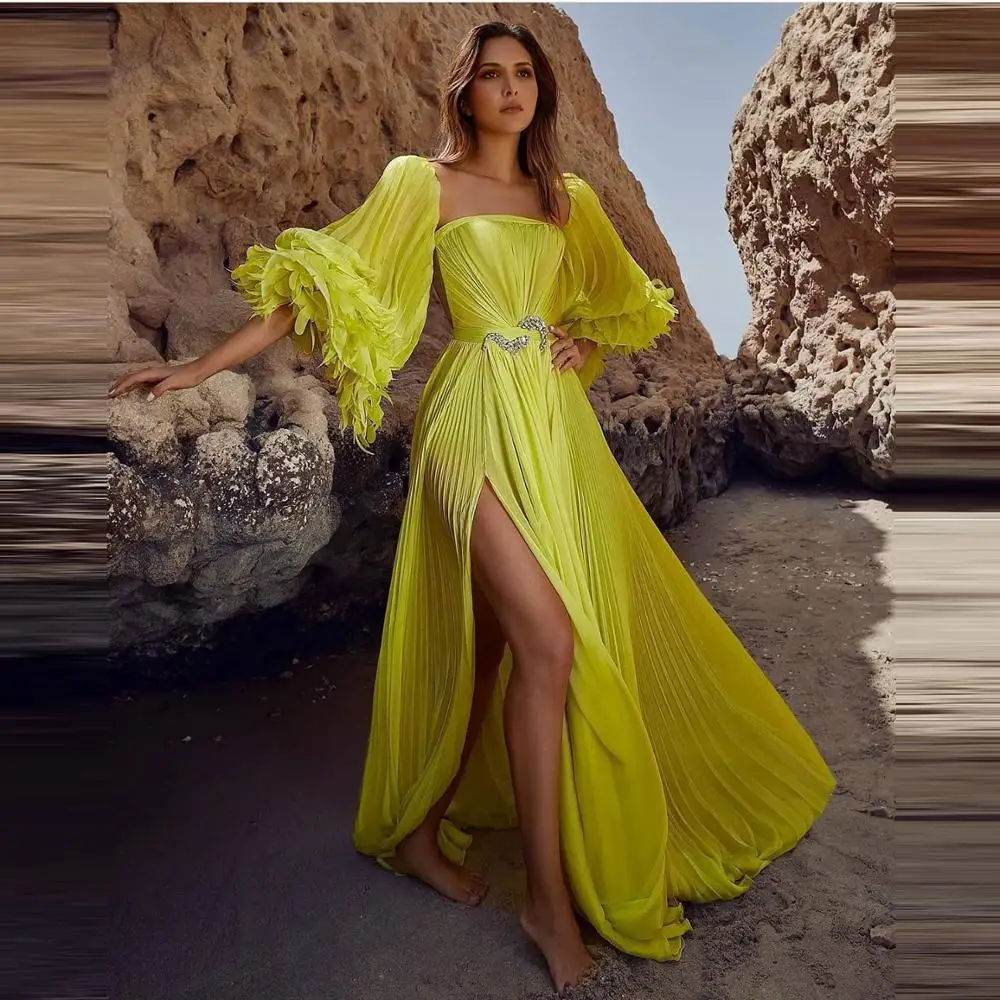 Элегантное Тюлевое ТРАПЕЦИЕВИДНОЕ платье для выпускного вечера, индивидуальный пошив, сексуальное вечернее платье с разрезом, вечерние платья с расклешенным рукавом, Платья для вечеринок