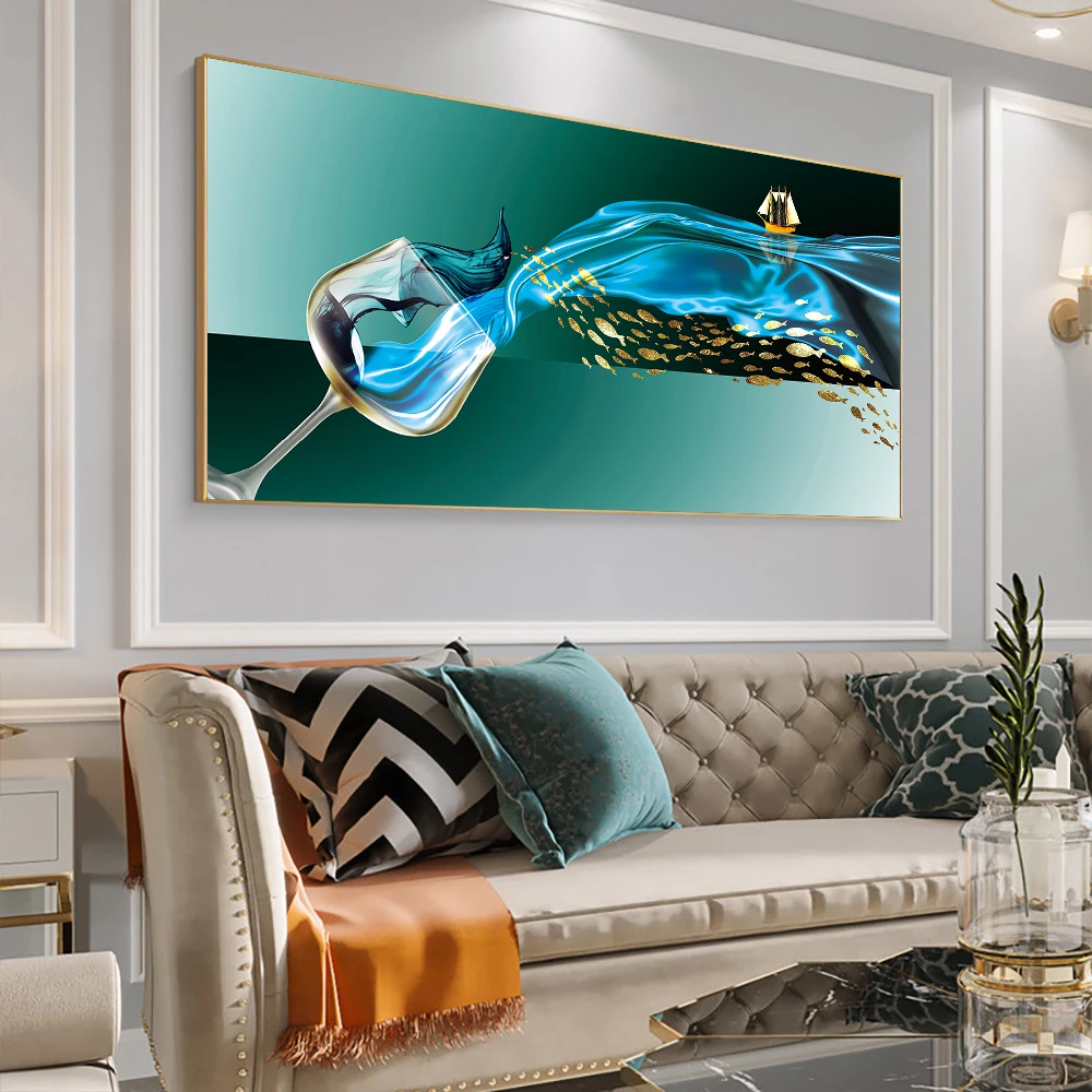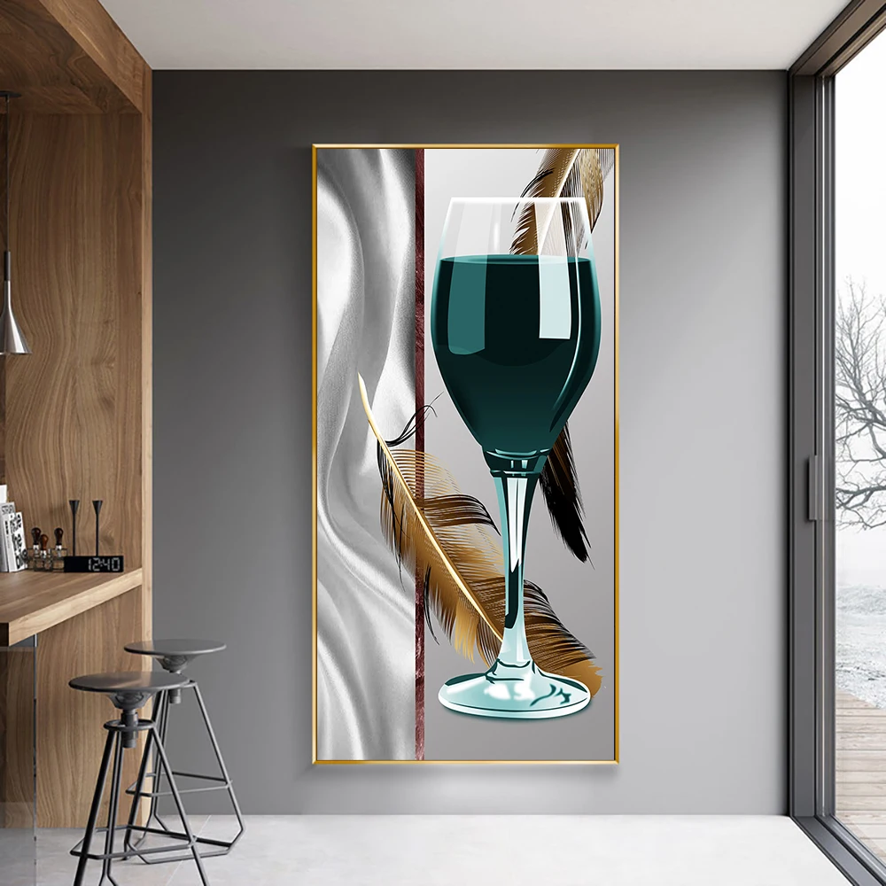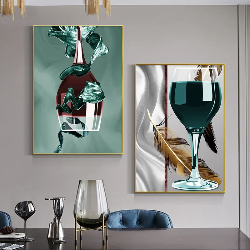 Картина на холсте с изображением чашки винного пера, скандинавский плакат и принты, Настенная картина куадроса для гостиной, украшение для дома