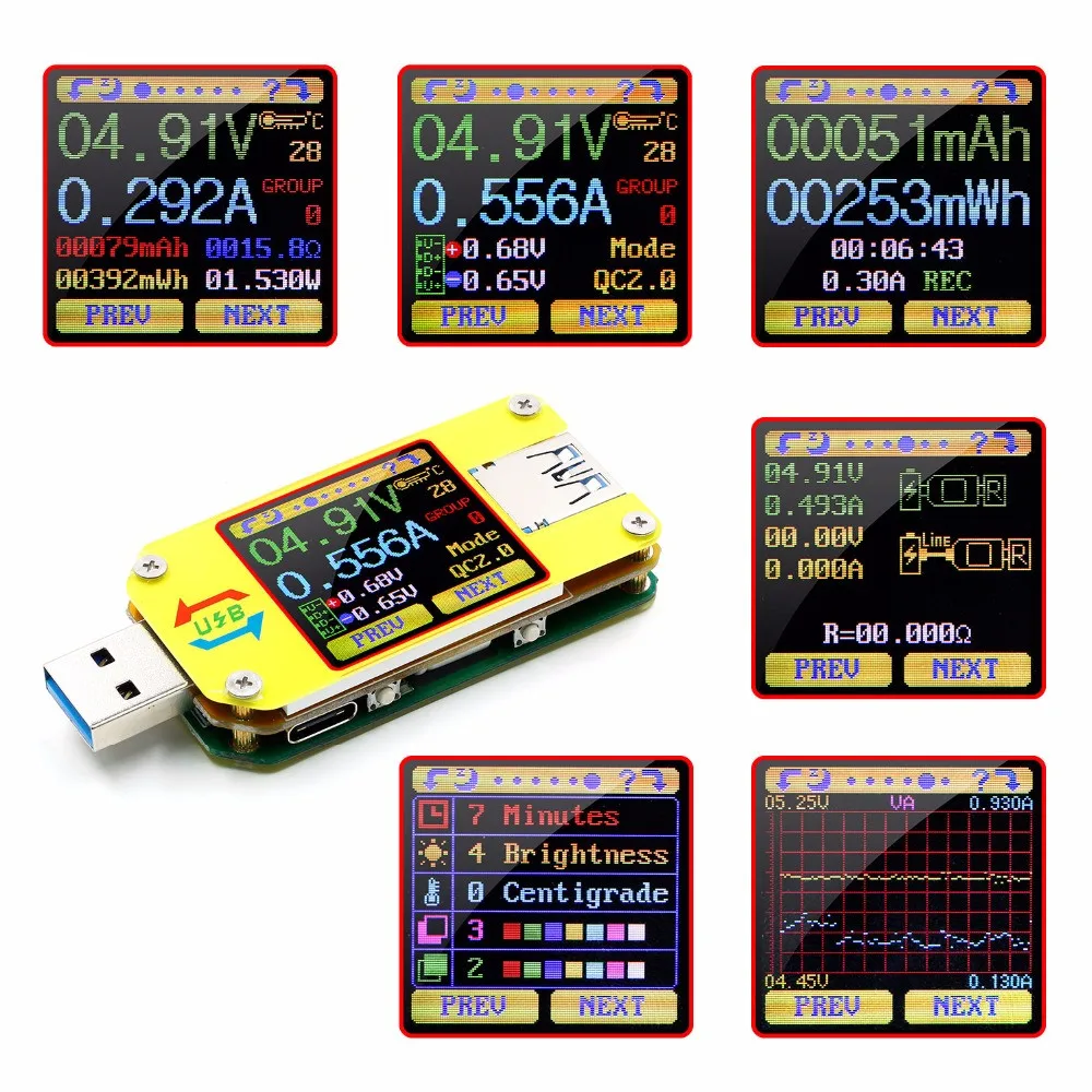 UM24UM24C UM25UM25C UM34UM34C USB Вольтметр Амперметр Измеритель сопротивления зарядный тестер напряжения тока ЖК-дисплей цветной дисплей