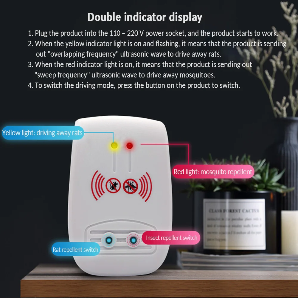 Электронный Отпугиватель вредителей, ультразвуковой отпугиватель вредителей для дома, репеллент от комаров, грызунов, клопов, мышей для отпугивания Кротов, вилка ЕССШАВеликобританииАвстралии