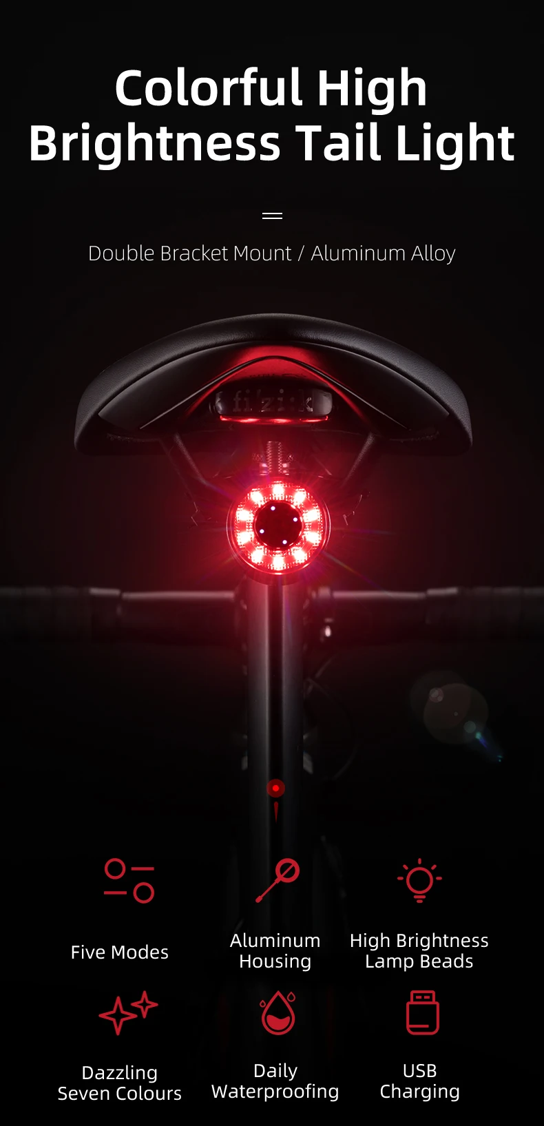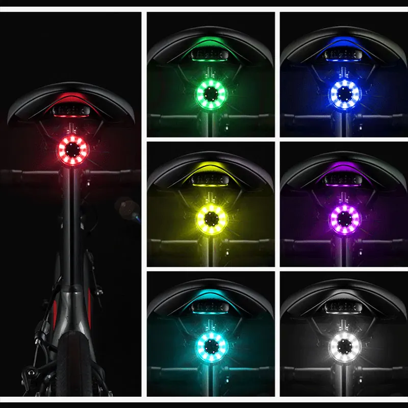 Задний велосветильник онарь ROCKBROS Q1, велосипедный предупреждающий задний светильник онарь, защита от дождя, зарядка через USB, 7 цветов