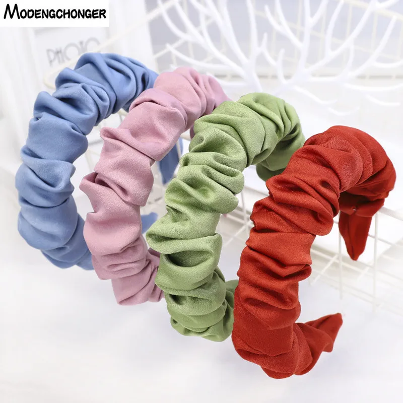 Повязка на голову Женская Складная, милая Мягкая атласная лента для волос, модный аксессуар на голову, большие размеры