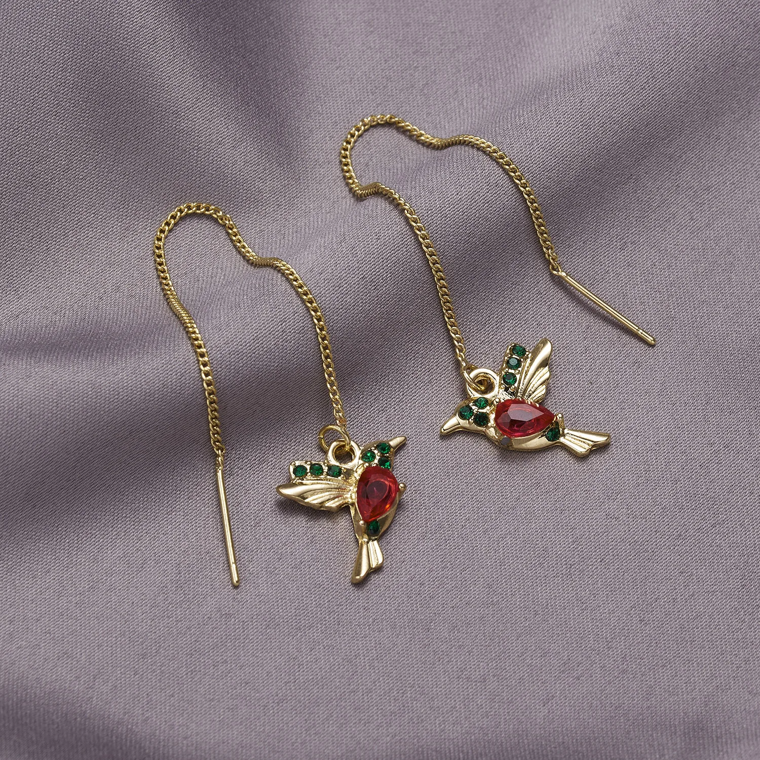 Женские длинные висячие серьги, украшенные кристаллами и птицами