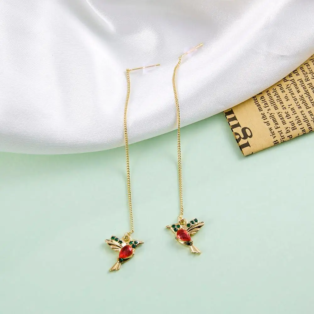 Висячие серьги с длинной нитью, кисточкой, колибри, новинка, малень...