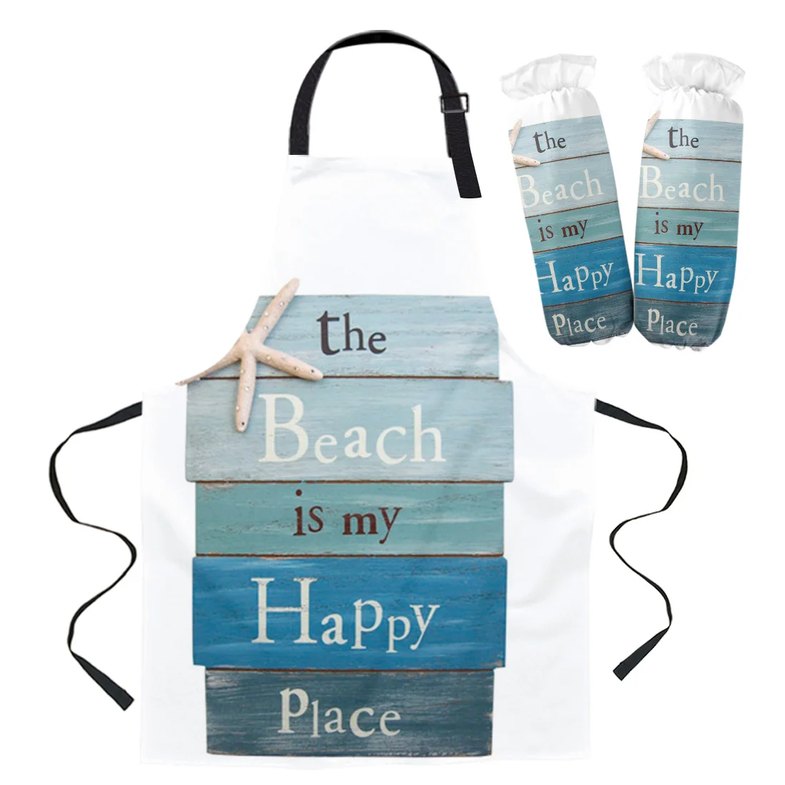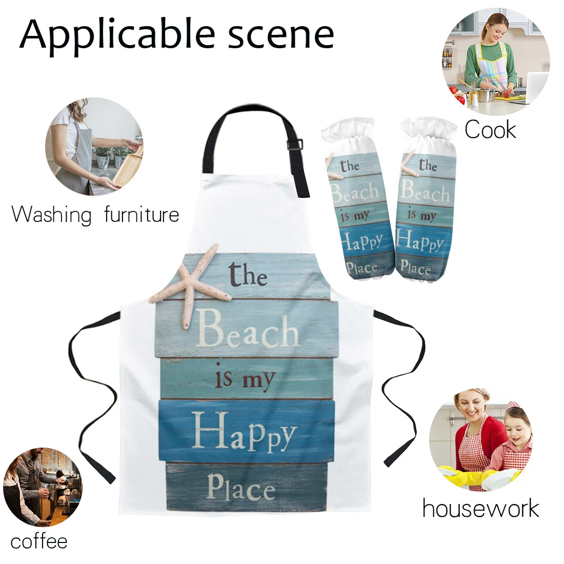 Пляжный женский фартук с морскими звездами, маленький фартук для взрослых и детей, манжеты для духовки, варежки, кухонные аксессуары для выпечки, нагрудники