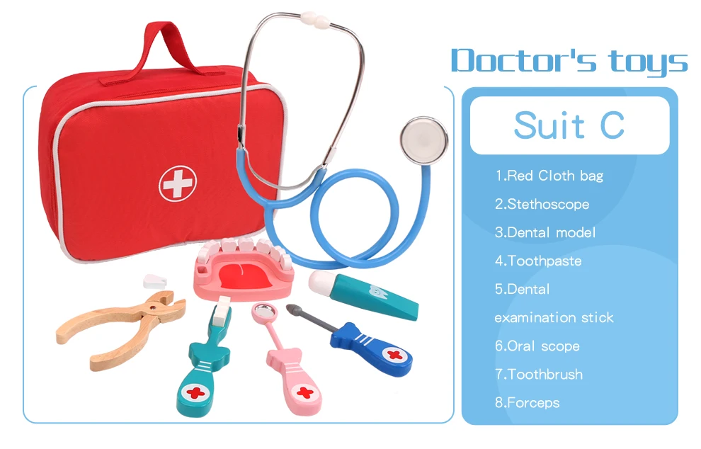 Детский деревянный набор для ролевых игр, стоматолог, врач, имитация медицинских принадлежностей, сумка для мальчиков и девочек