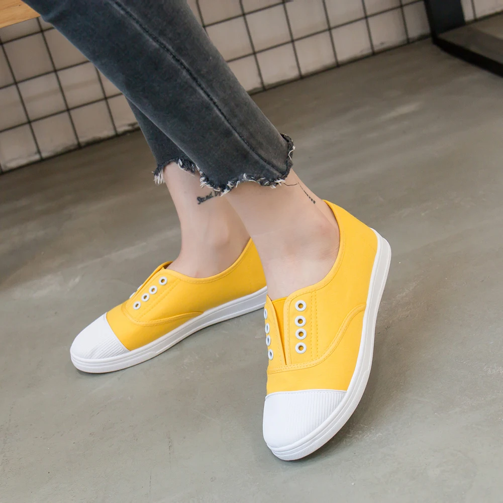 Женские парусиновые туфли на плоской подошве, 2020, однотонные удобные лоферы без шнуровки, дамские Мокасины, обувь для девочек, большой размер 41