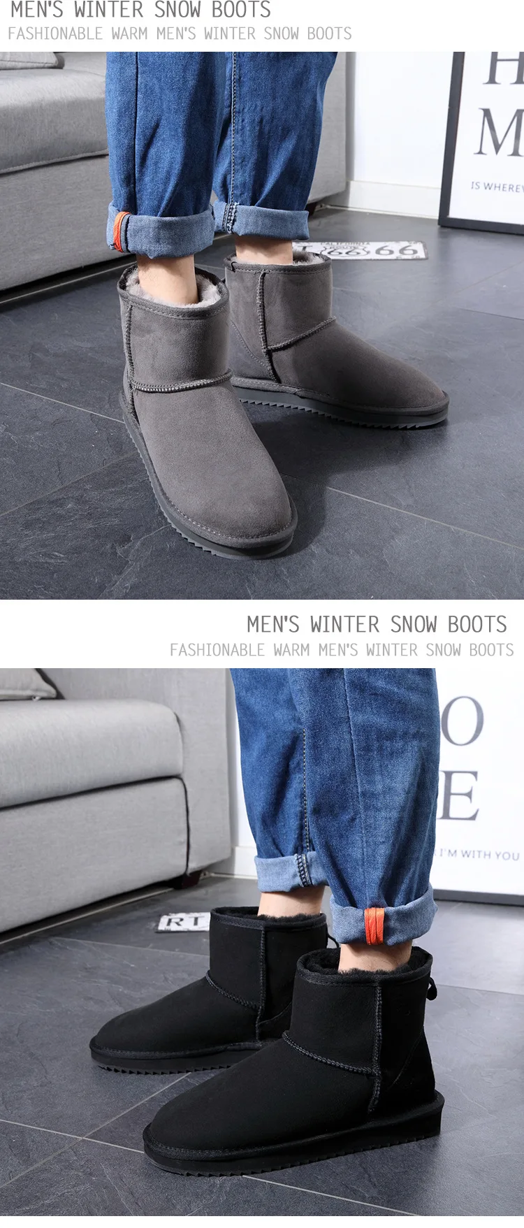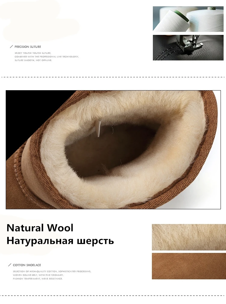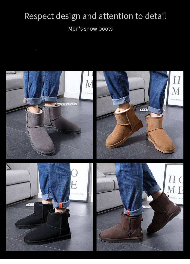Классические австралийские мужские ботинки, зимние ботинки из натуральной овчины, короткие ботинки с мехом, черная зимняя мужская обувь из натуральной шерсти