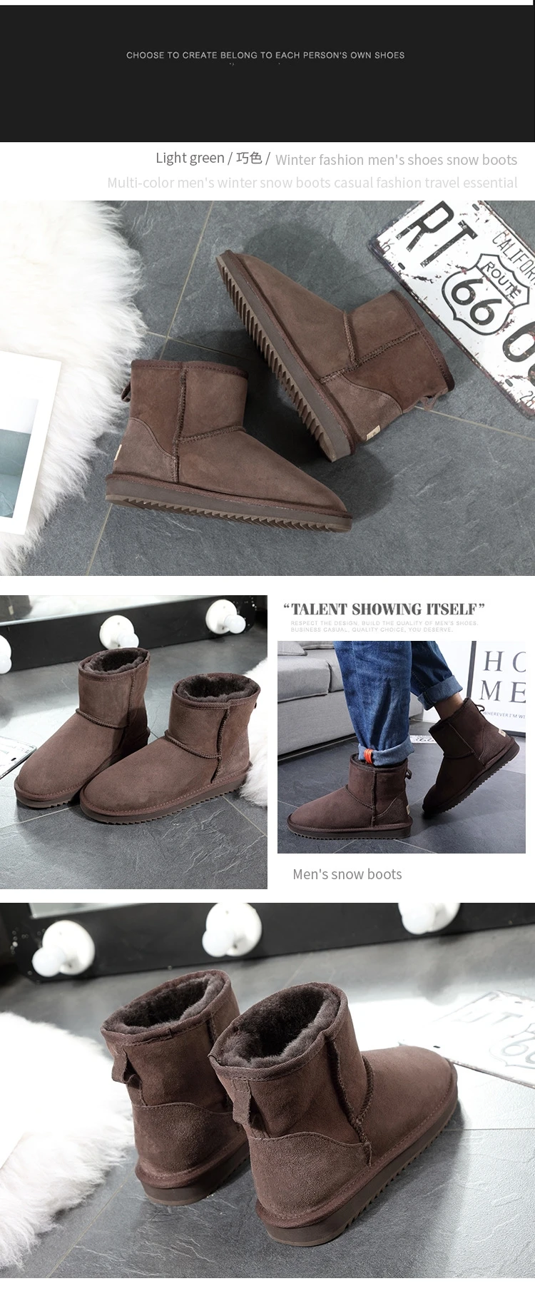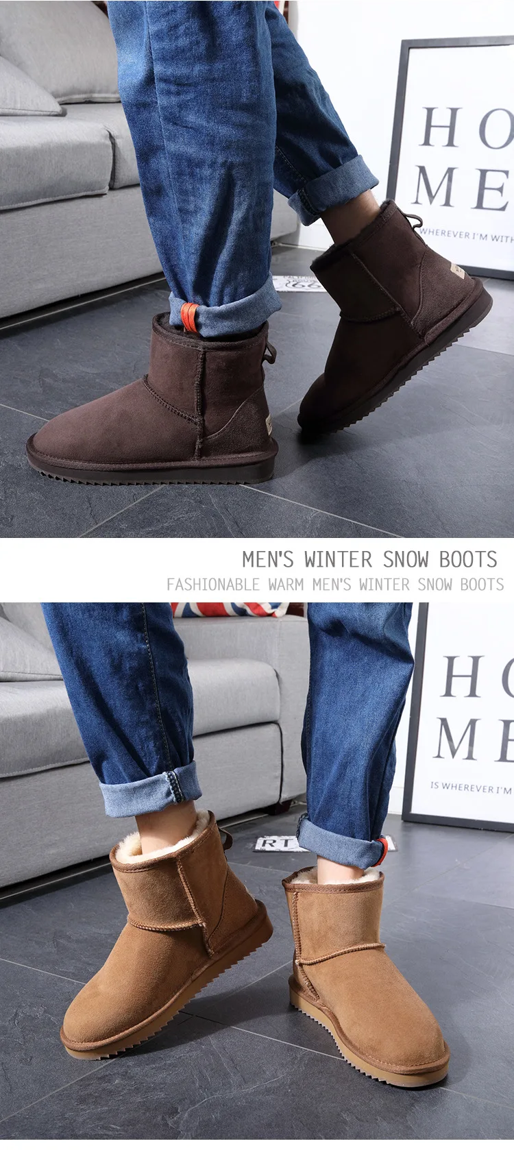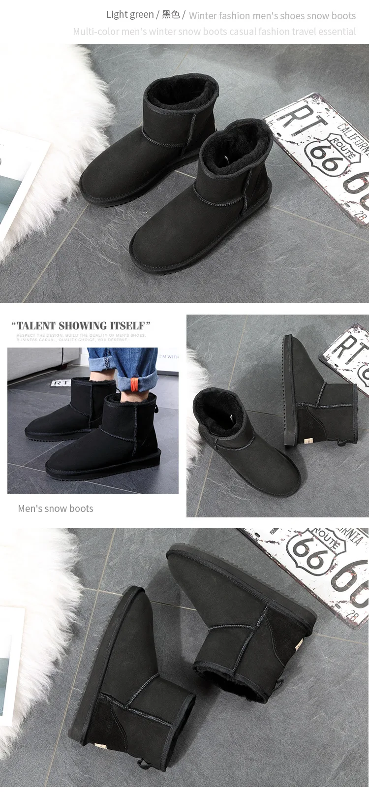Классические австралийские мужские ботинки, зимние ботинки из натуральной овчины, короткие ботинки с мехом, черная зимняя мужская обувь из натуральной шерсти
