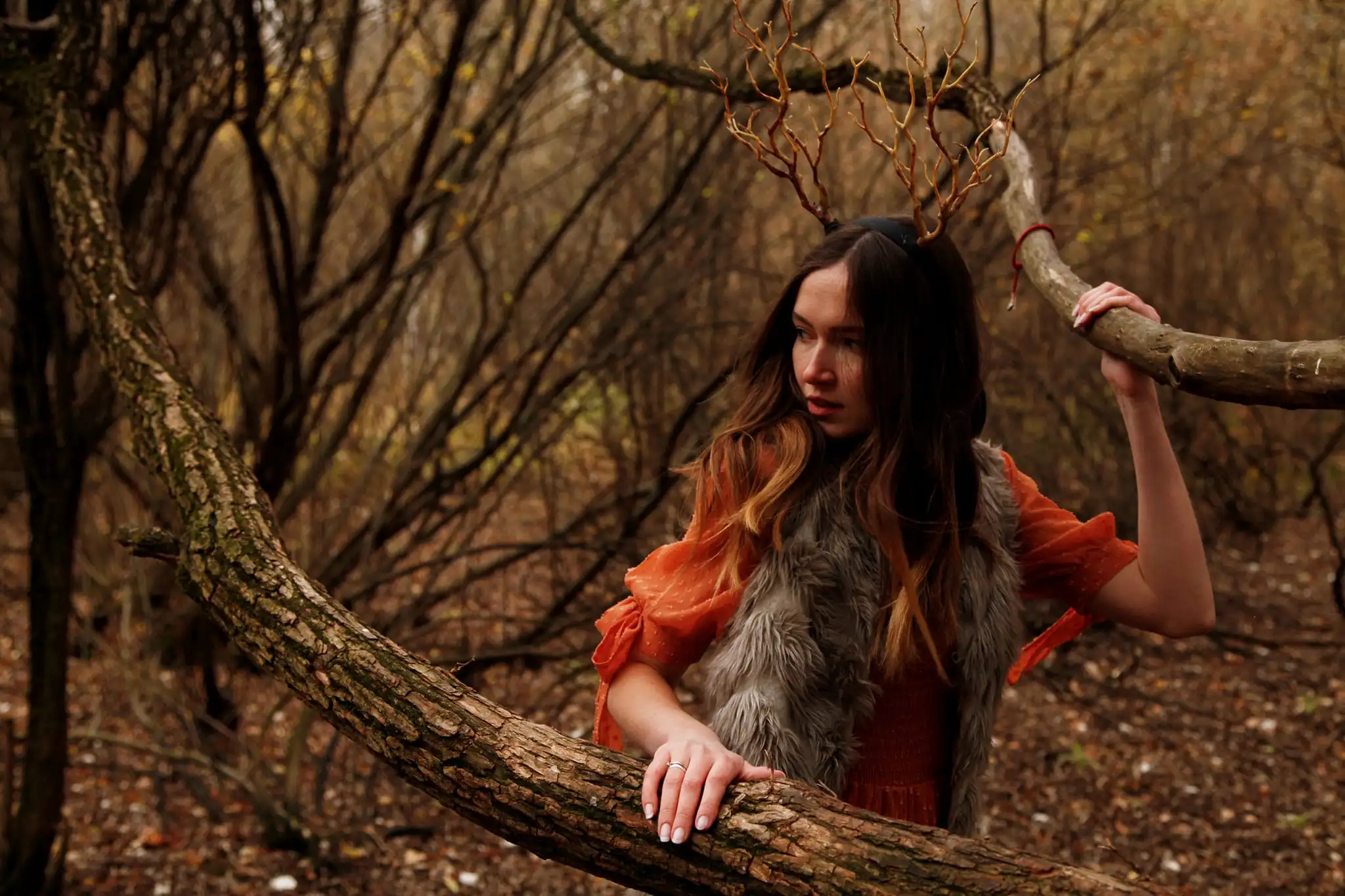 Готический головной убор с рогом оленя и ветками деревьев