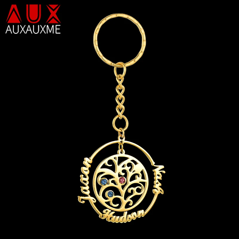 Брелоки Auxauxme с камнем-талисманом, деревом жизни на заказ, брелоки из нержавеющей стали для всей семьи, детский подарок на день рождения для мамы, папы, 1-3 имена