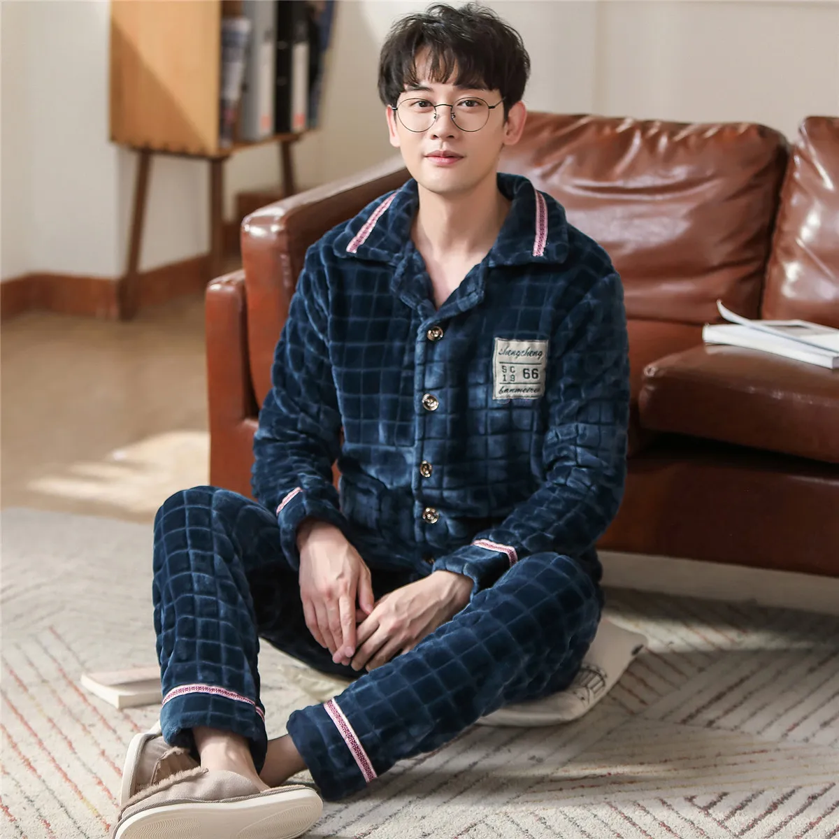 Толстые мягкие фланелевые пижамы, спальные костюмы, мужские пижамы, мужские стильные пижамы, мужские пижамы с длинными рукавами, мужские пижамы