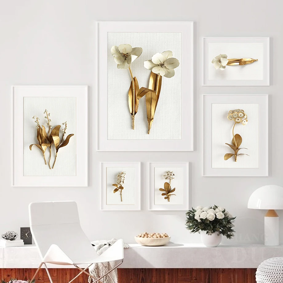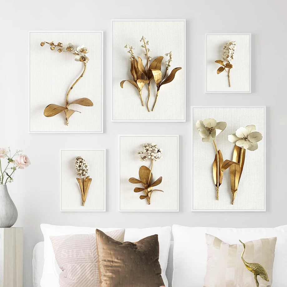 Золотые растения DDHH, листья и цветы, настенная живопись, картина ...