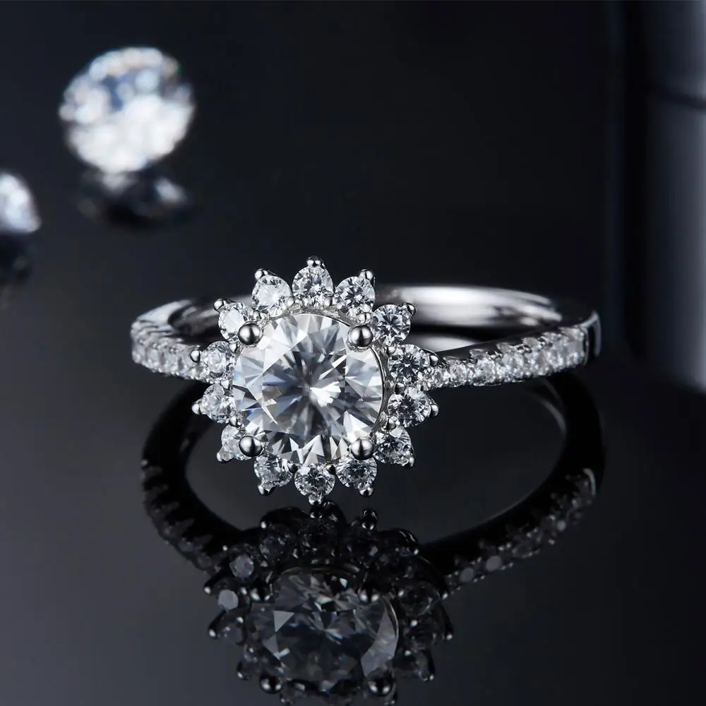 Gem балетки 925 пробы серебряные круглые с рисунком "Подсолнух" Муассанит кольцо 1.0Ct 6,5 мм VVS1 синтетический бриллиант Обручение кольца для Для женщин