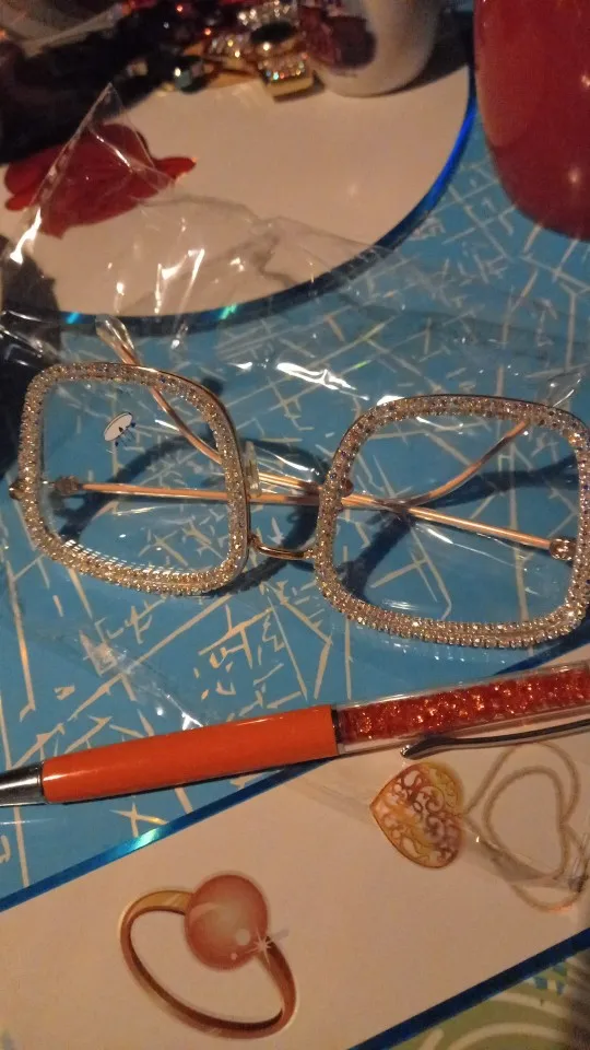 доставка быстрая. очки очень красивые. стразы сверкающие. рекомендую к покупке.