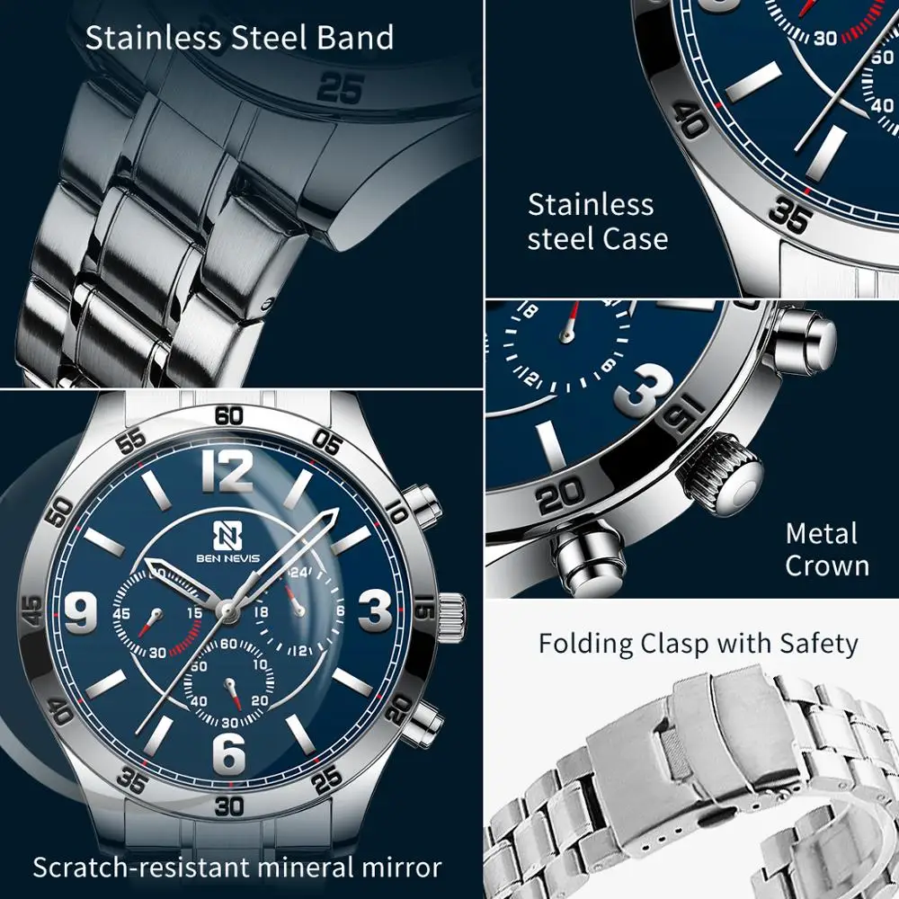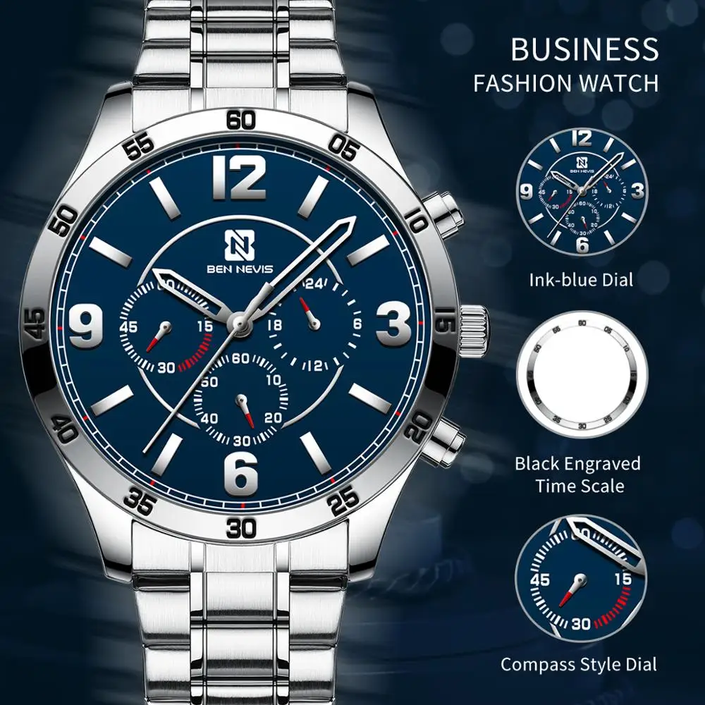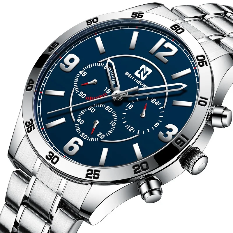Бен Невис Новая мода полный стали бизнес Кварцевые часы мужские час...
