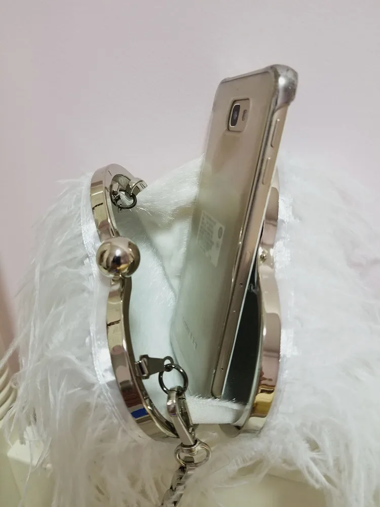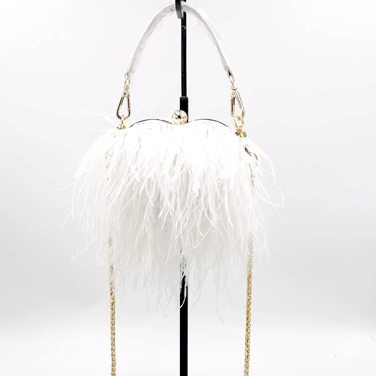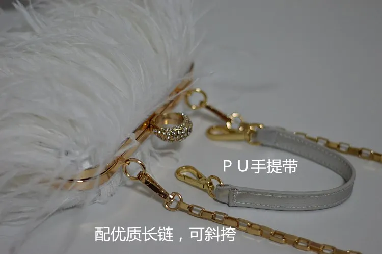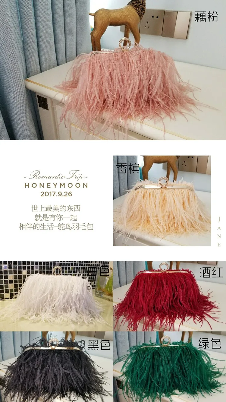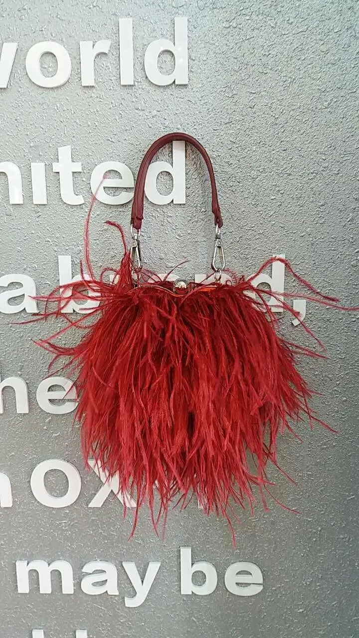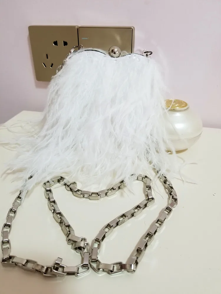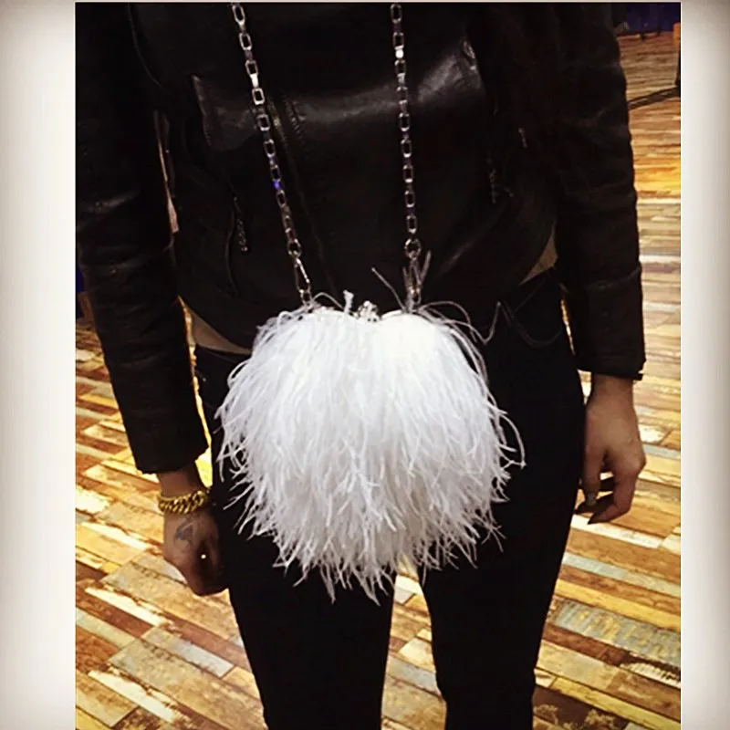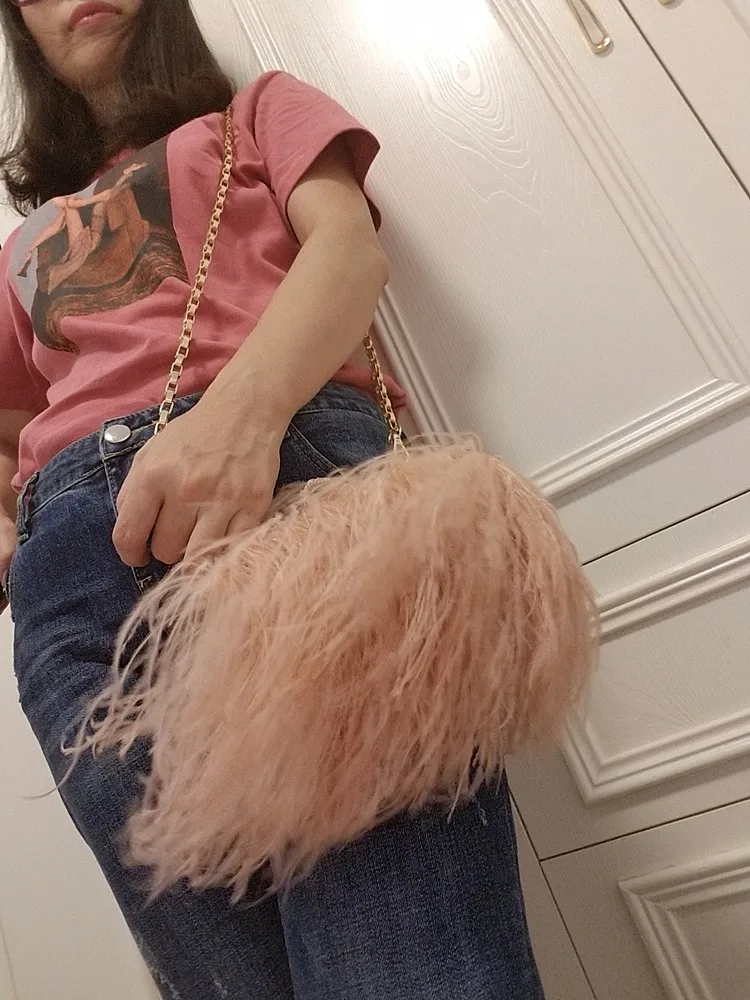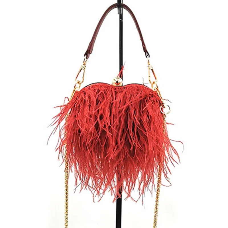Вечерняя сумка из страусиного меха INS, зимняя Роскошная сумочка на плечо с цепочкой для вечеринки, свадьбы, повседневные клатчи с перьями