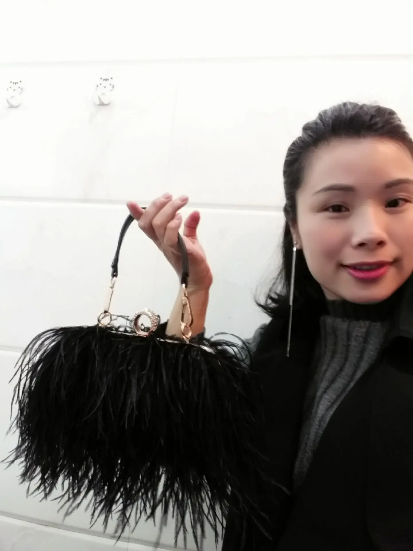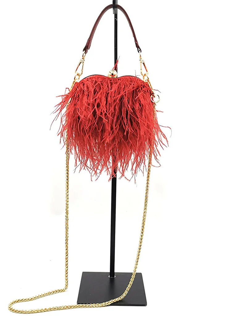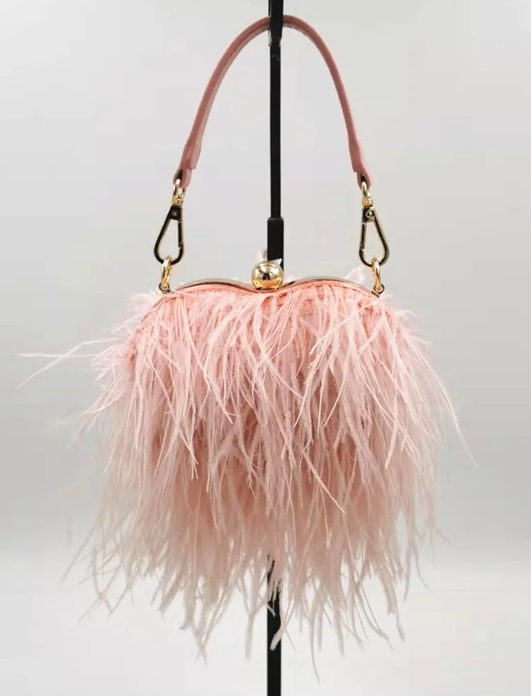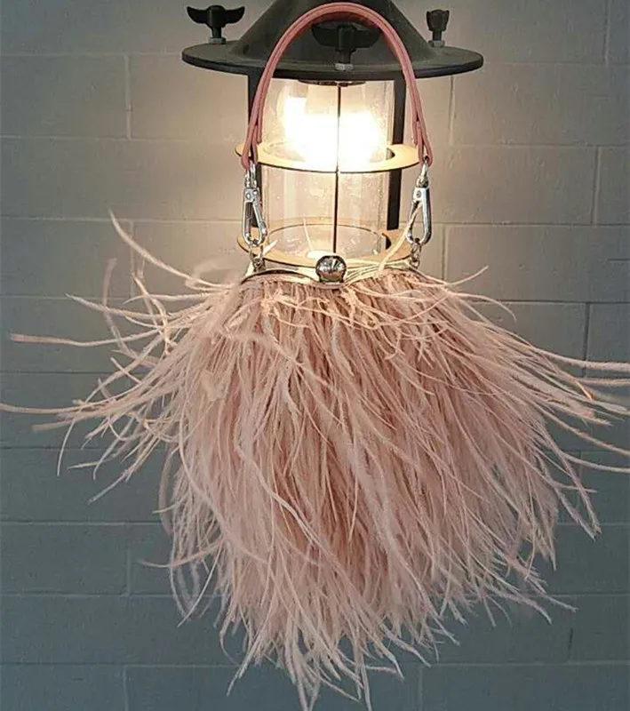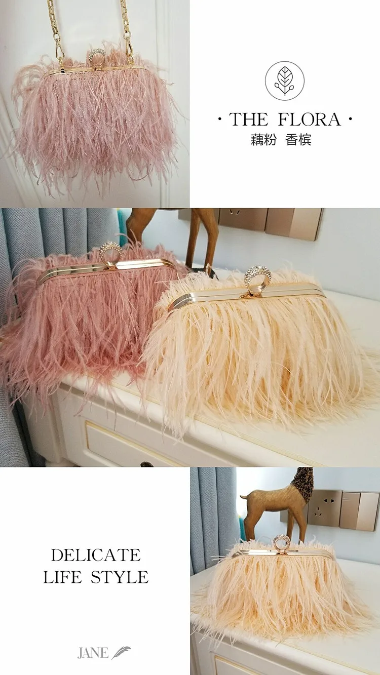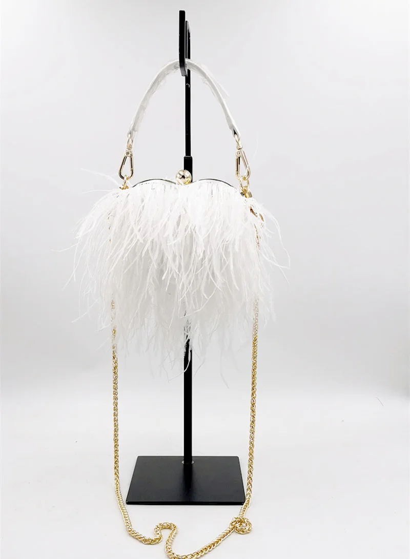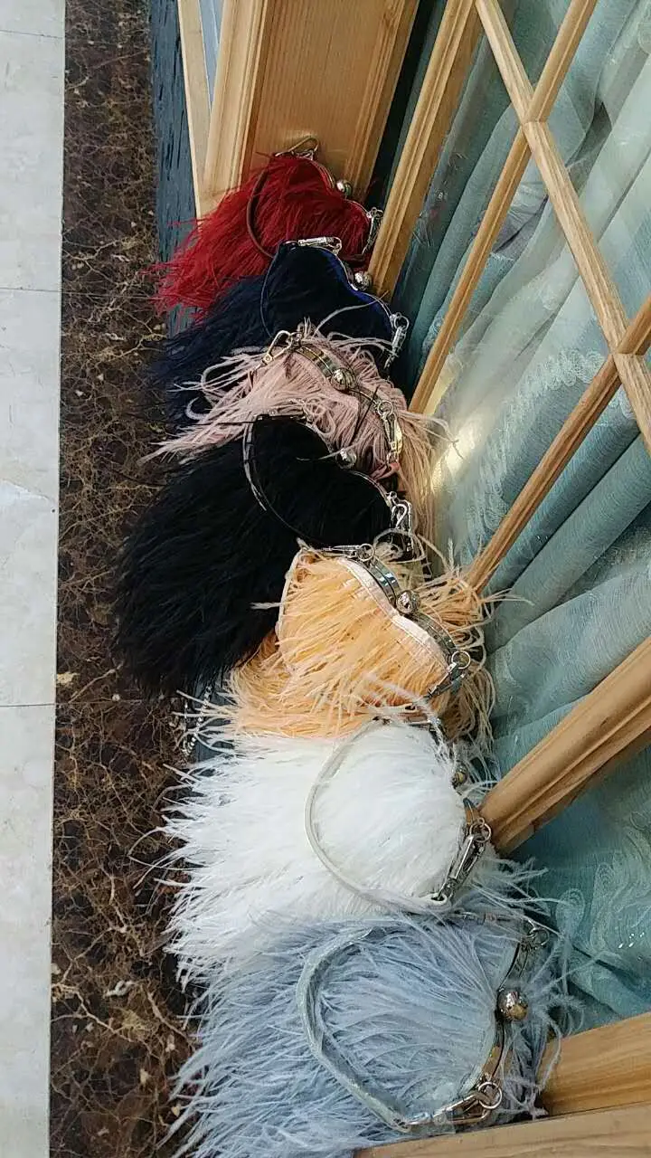 Вечерняя сумка из страусиного меха INS, зимняя Роскошная сумочка на плечо с цепочкой для вечеринки, свадьбы, повседневные клатчи с перьями
