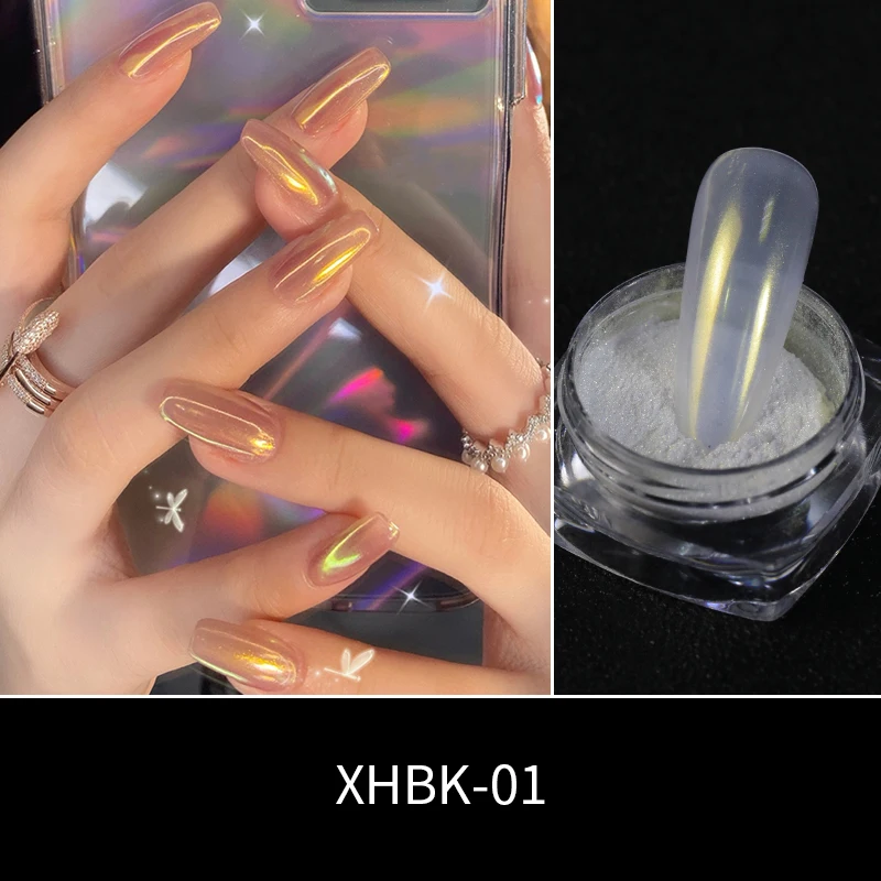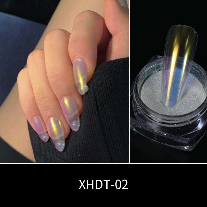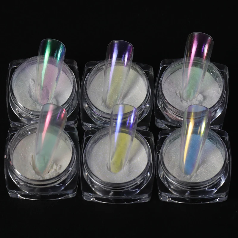 HNUIX 1 коробка жемчужные ногти блеск Аврора жемчужная пудра неоновая яркая Русалка окунание ногтей хромовый пигмент пыль лак Декор