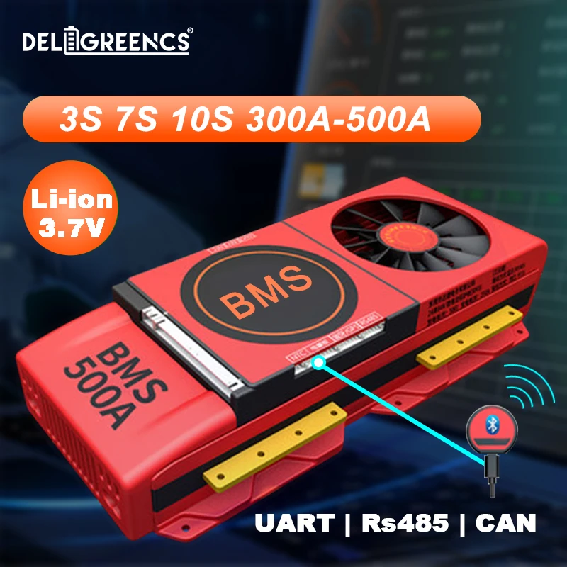 7S 500A Li-Ion Smart BMS 3S 10S 300A 400A 3,7 V Номинальная литиевая Daly BMS с вентилятором UART Bluetooth 12V 24V 36V для электромобиля