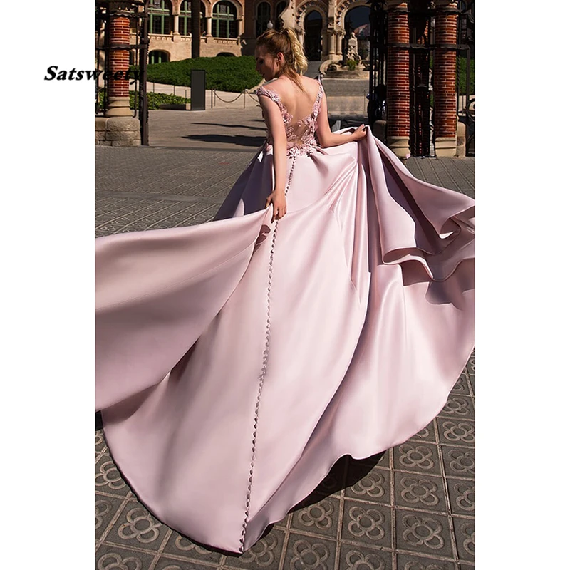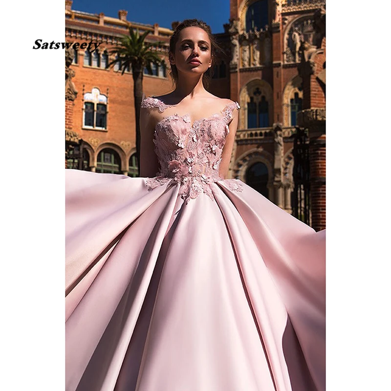Атласное Бальное платье для выпускного вечера 2022 года, вечернее платье с кружевной аппликацией и цветами, розовое элегантное вечернее платье, длинное вечернее платье, платье для торжества