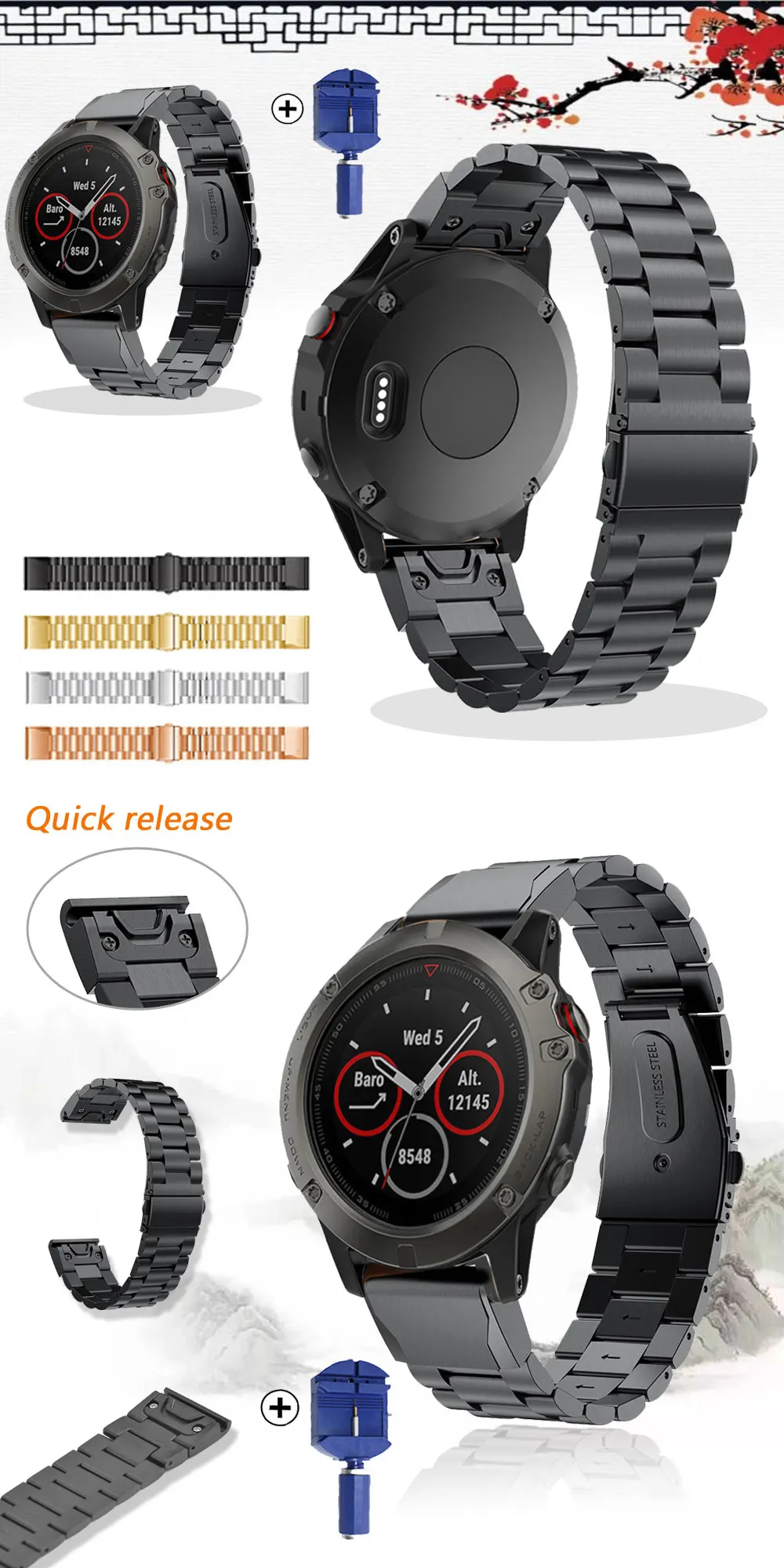 Suitable for modelsfor Garmin Fenix 5/6/5Plus/Fenix 5X/6X/6pro Fenix 3HR