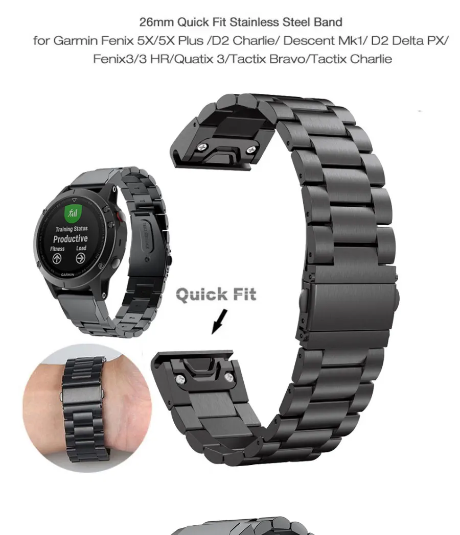 Стальной ремешок для наручных часов Garmin Fenix 6X 6 6S Pro 5X 5 5...