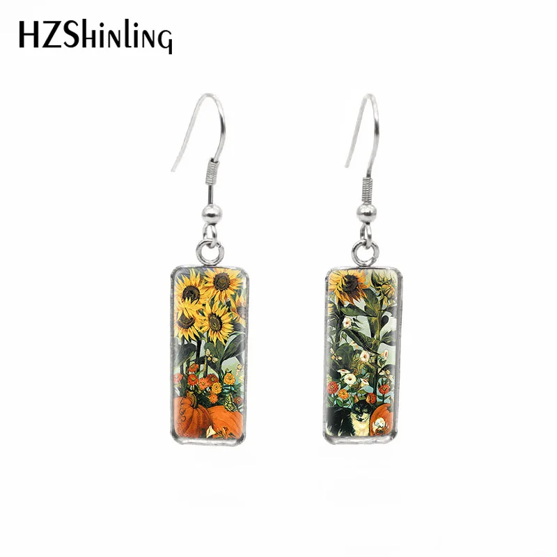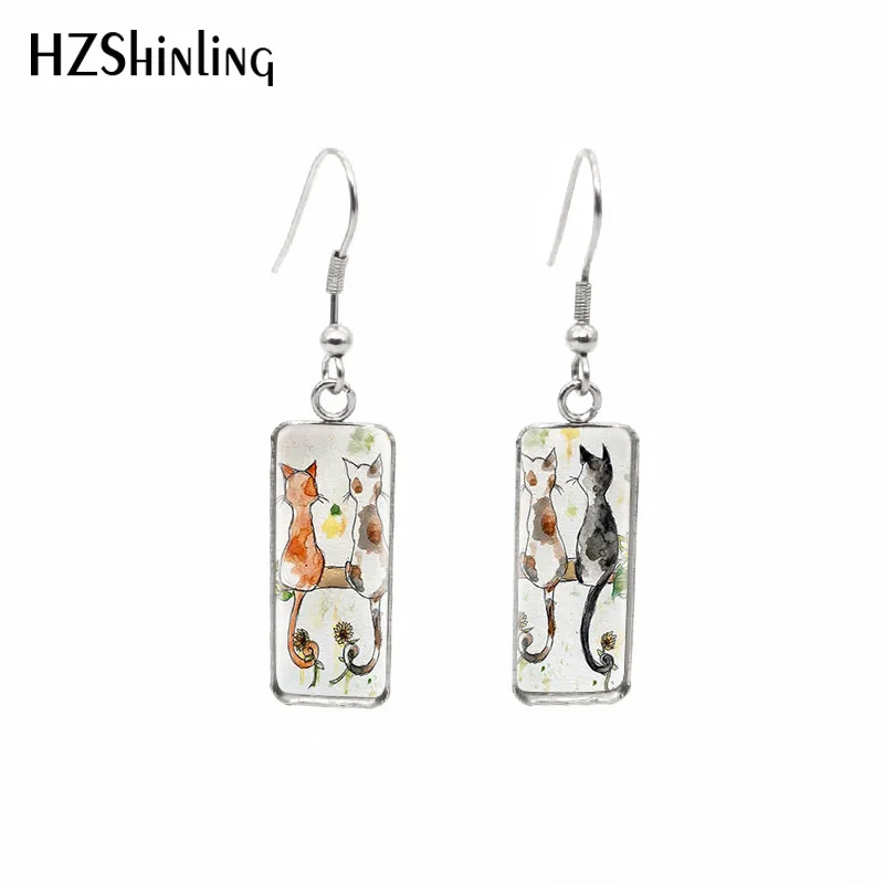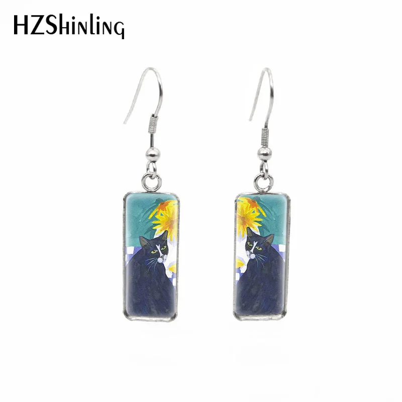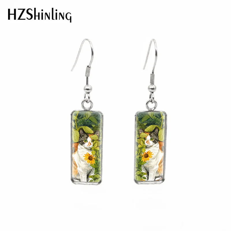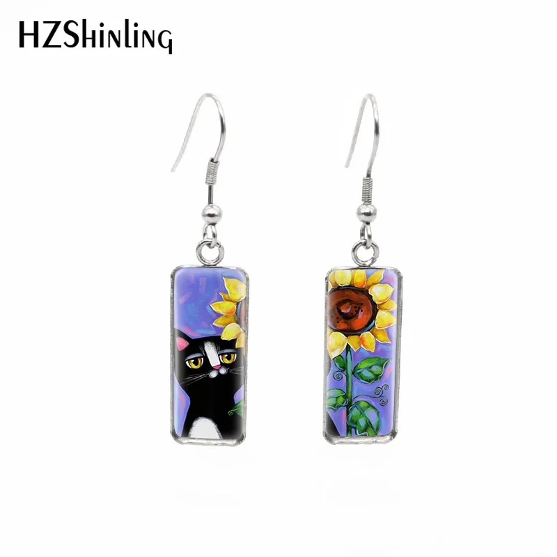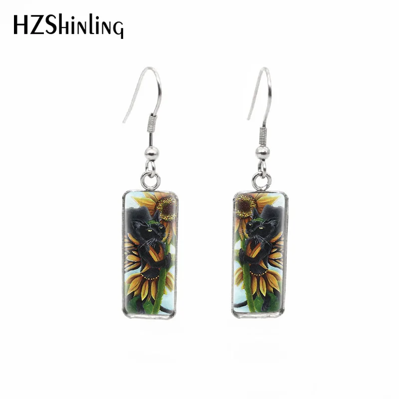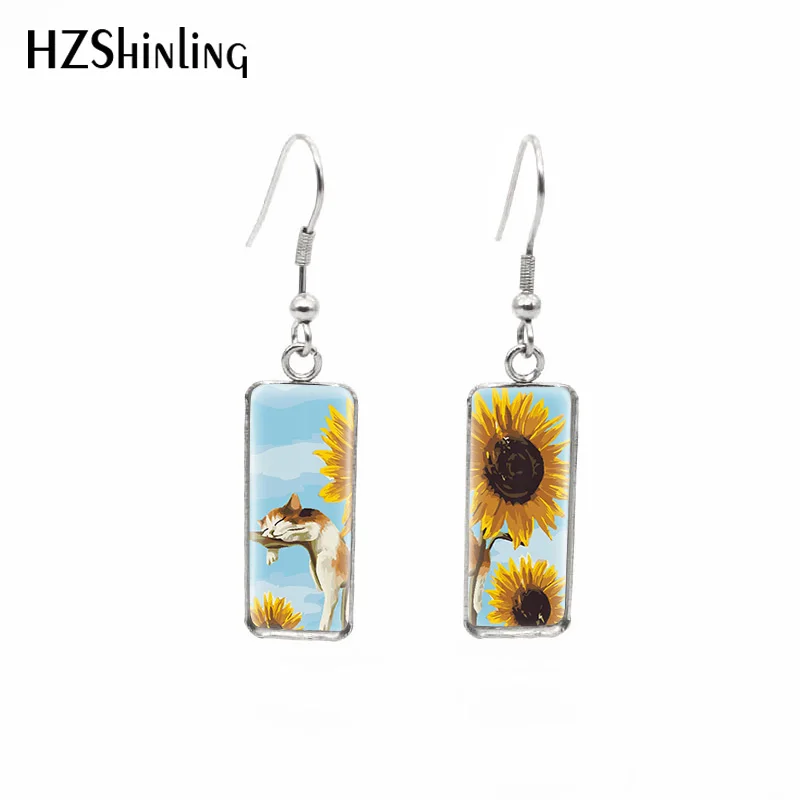 Новинка 2020, серьги-кошки в виде подсолнуха с кошками, прямоугольные серьги ручной работы с крючком, стеклянные украшения для фотографий